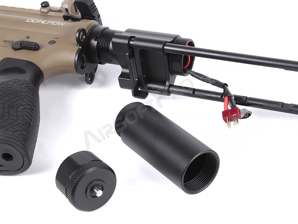 Vnější hlaveň je zakončena 14 mm levotočivým závitem s instalovaným kovovým tlumičem plamene, který funguje jako amplifikátor. Akumulátor se vkládá do tubusu pažby, přičemž zbraň je již v základu osazena moderním konektorem Dean-T. Součástí balení je i prodloužení tubusu, které umožňuje použití větších baterií s vyšší kapacitou (o délce až 11,5 cm).