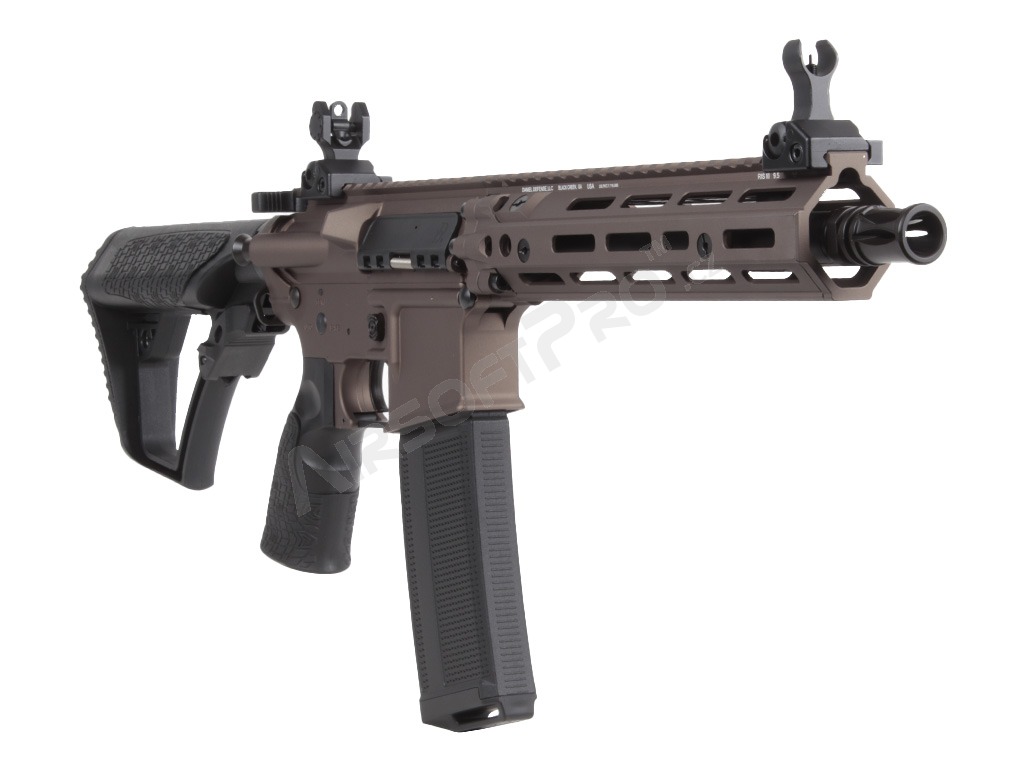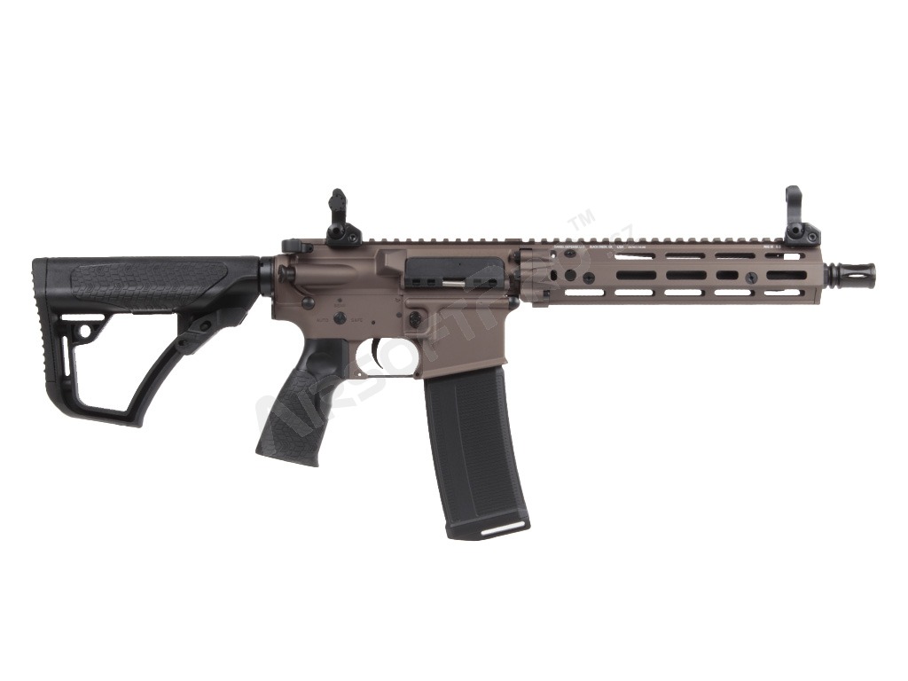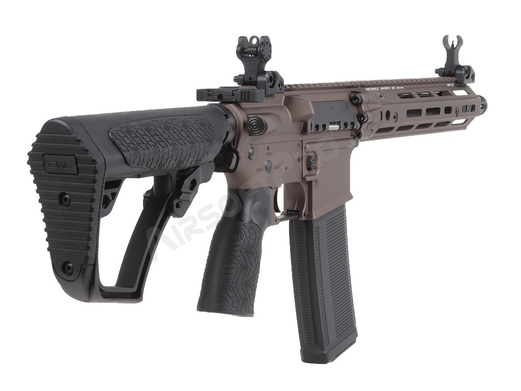 Tělo zbraně je vyrobeno z vysoce kvalitní hliníkové slitiny s precizním zpracováním na CNC strojích. Hlavním lákadlem je licencované předpažbí Daniel Defense RIS III M-LOK, které poskytuje dostatek prostoru pro montáž taktického příslušenství (svítilny, lasery, gripy). Pažba typu ETA a ergonomická pistolová rukojeť jsou vyrobeny z odolného polymeru. Zbraň je osazena QD body pro rychlé uchycení popruhu a oboustrannými prvky pro maximální komfort ovládání.