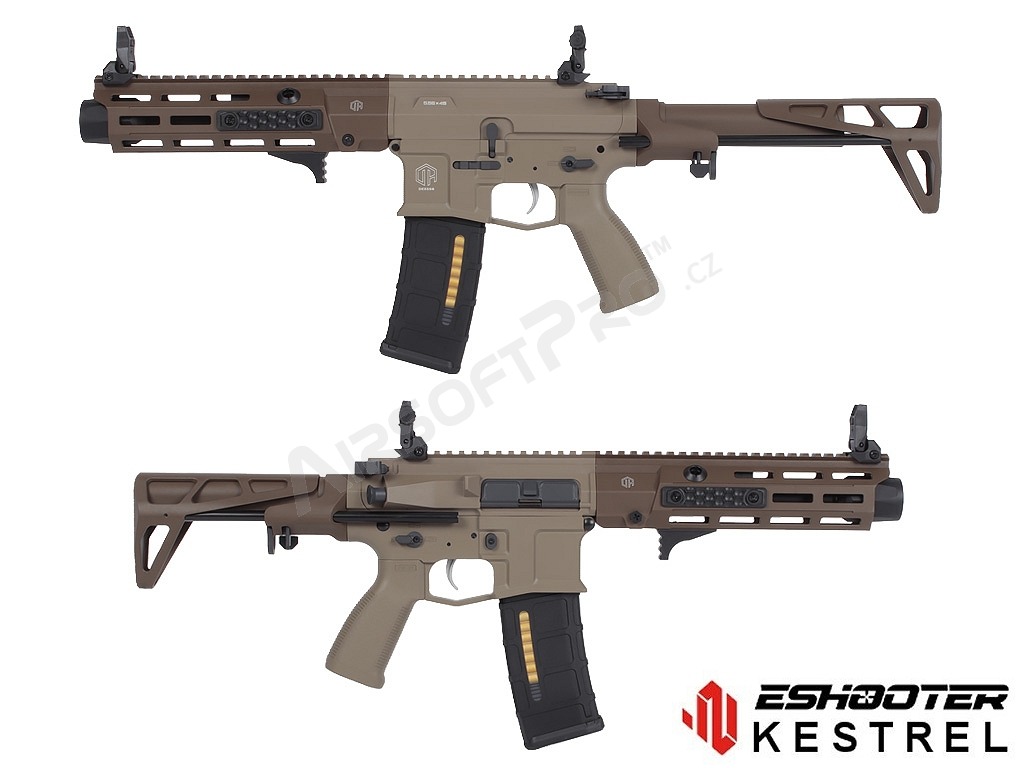Zbraň je osazena výkonnou procesorovou jednotkou Kestrel 2 (ETU) s nastavitelnými režimy střelby a možností programování přes Bluetooth pomocí mobilní aplikace — rychlé přepínání módů i jemné ladění jsou tak otázkou pár kliknutí. Procesorové jednotky Kestrel patří mezi to nejlepší, co je na trhu dostupné.