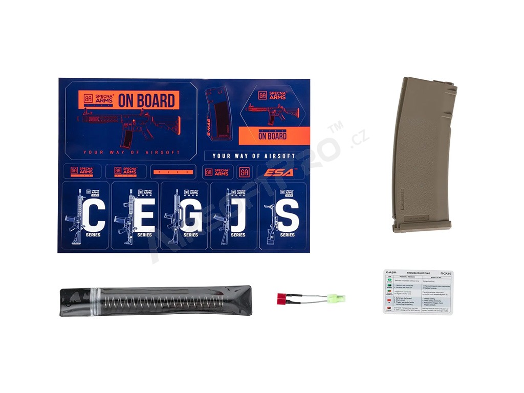 Zbraň má z výroby nainstalovaný kvalitní a ověřený systém MOSFET X-ASR známé polské značky GATE. Systém MOSFET X-ASR se postará o bezpečnost komponentů zbraně, zlepší odezvu spouště a životnost elektroniky a baterie a umožní vám diagnostikovat základní poruchy uvnitř zbraně díky zabudovaným indikačním LED diodám.