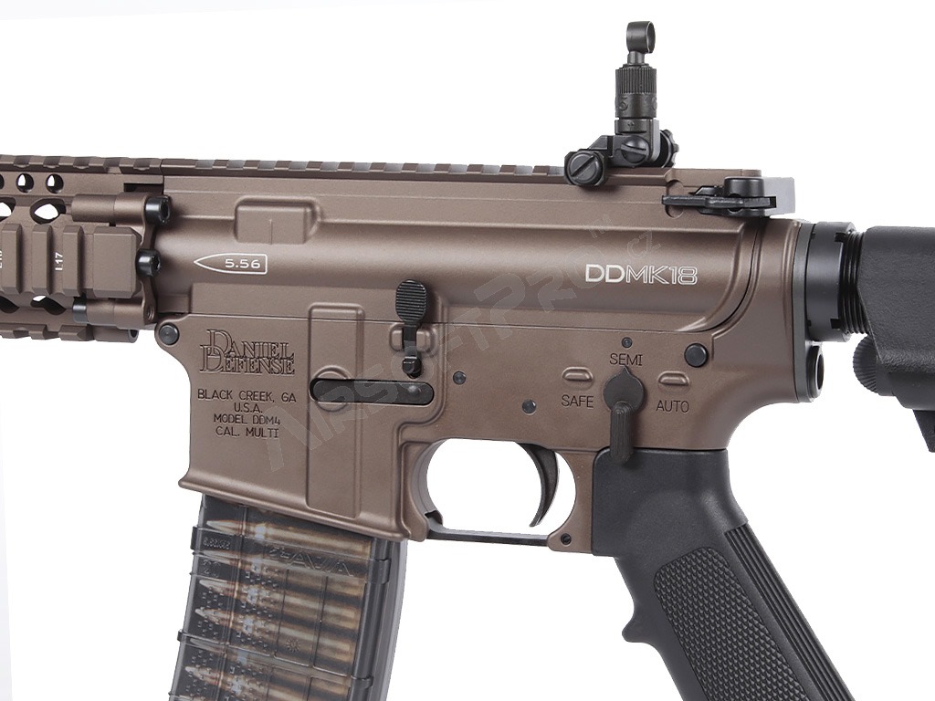 - Oficiálně licencovaná replika Daniel Defense MK18 s hlubokým ražením.