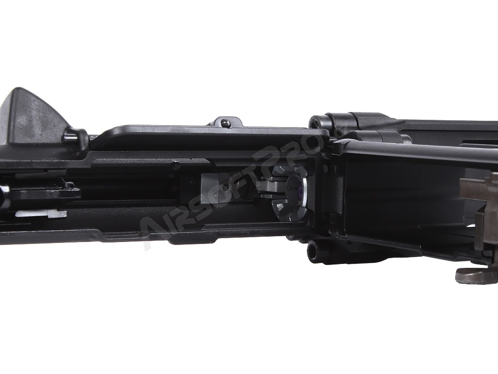 Kompaktní 12,5" vnější hlaveň činí z této pušky ideální nástroj pro boj na střední vzdálenosti. Zbraň je osazena nastavitelnou pažbou EMG "ETA" a ergonomickou pažbičkou. Autentičnost doplňuje licencovaný tlačný zásobník Lancer Systems L5 AWM na 30 ran s realistickým značením.