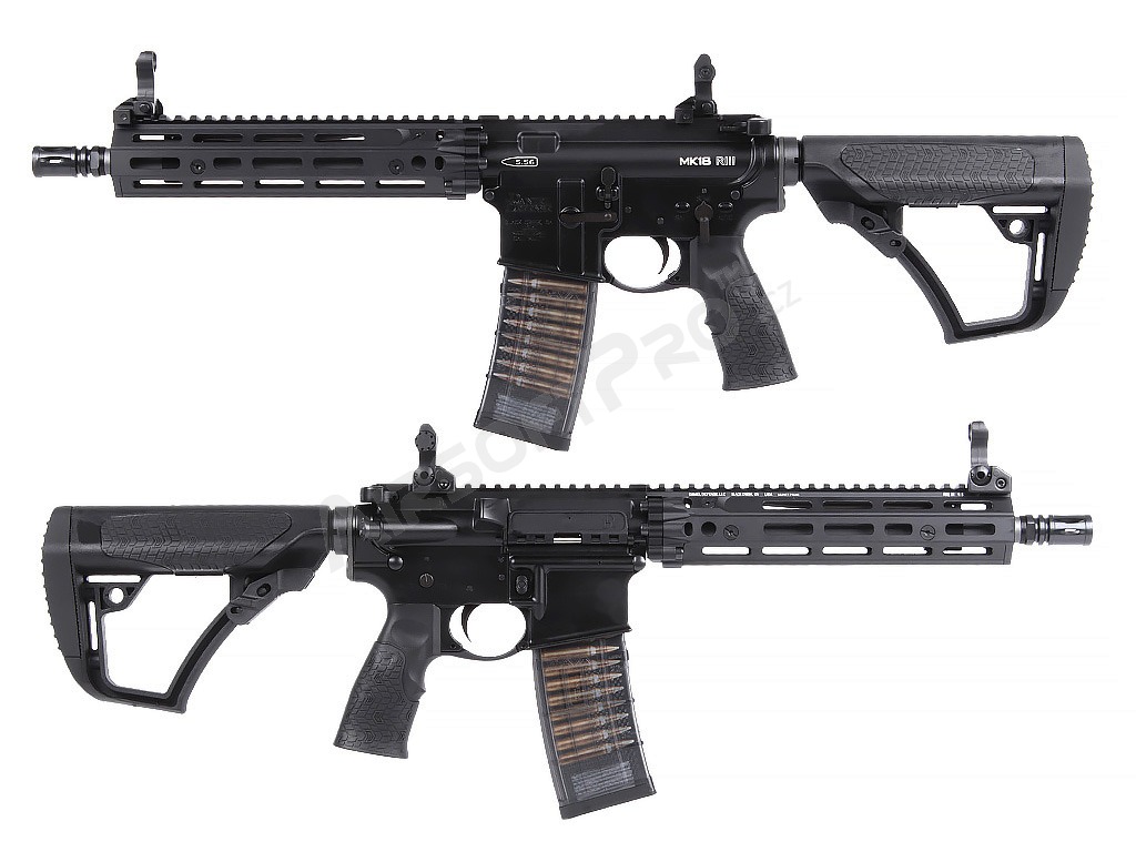 - Oficiálně licencovaná replika Daniel Defense MK18 RIII s hlubokým ražením.