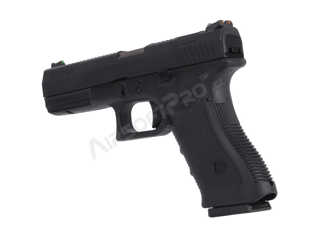 Airsoftová pistole GP1799B - GBB, stříbrný kovový závěr, černý rám [WE] Airsoftová pistole GP1799B - GBB, stříbrný kovový závěr, černý rám