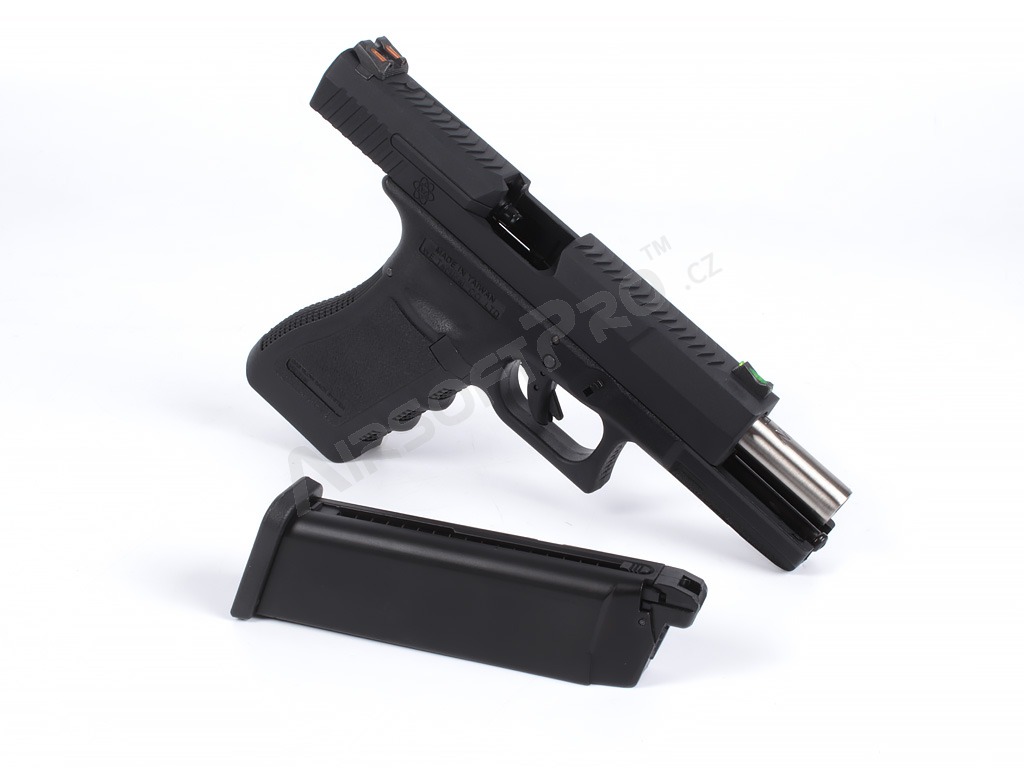 Tento model má velice dobře tvarovatelnou ergonomickou pažbičku, která skvěle padne do ruky. Mířidla jsou světlovodná, což umožňuje rychlé a přesné zamíření i za zhoršených světelných podmínek.