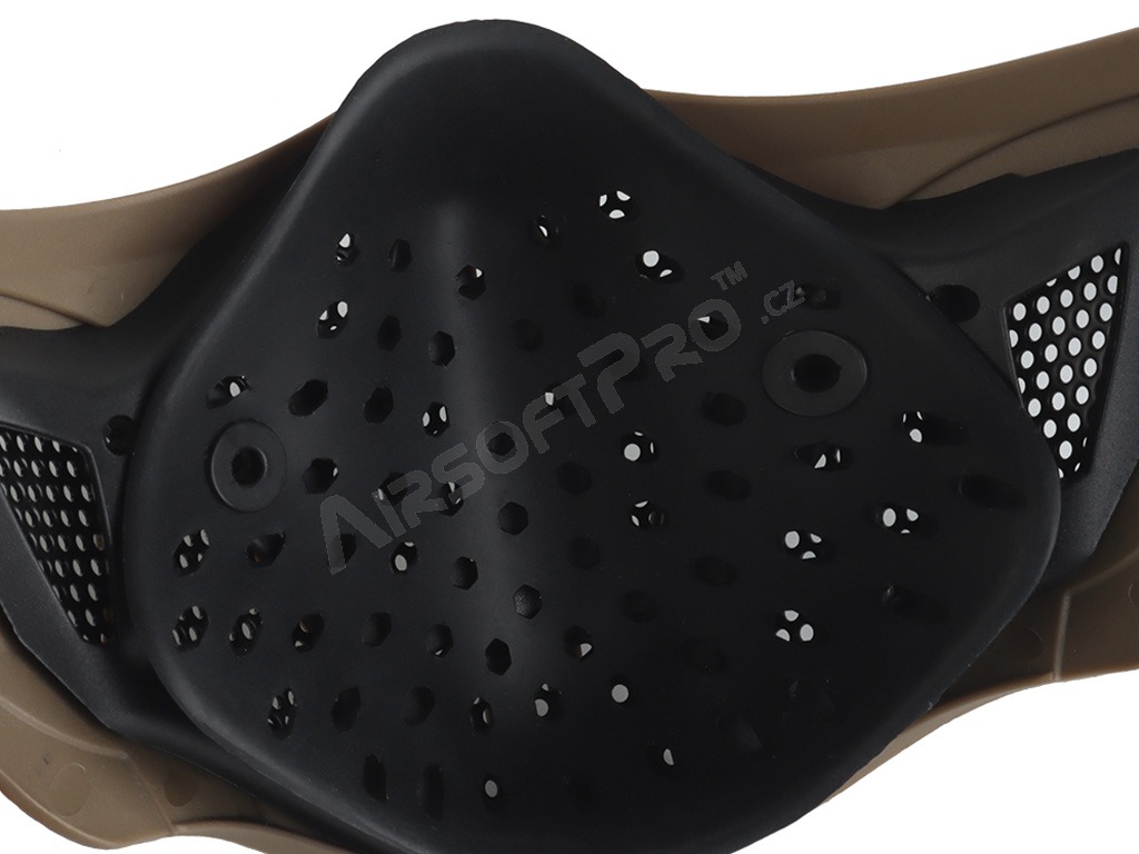Maska má velké ventilační otvory umožňující snadné dýchání při nošení a zároveň zajišťují ochranu tváře před přilétajícími kuličkami. Vnitřní část masky je kvalitního silikonu, který je příjemný na dotek a komfortní pro nošení.