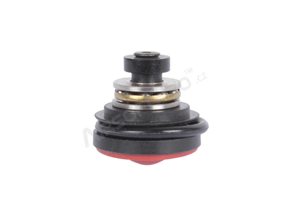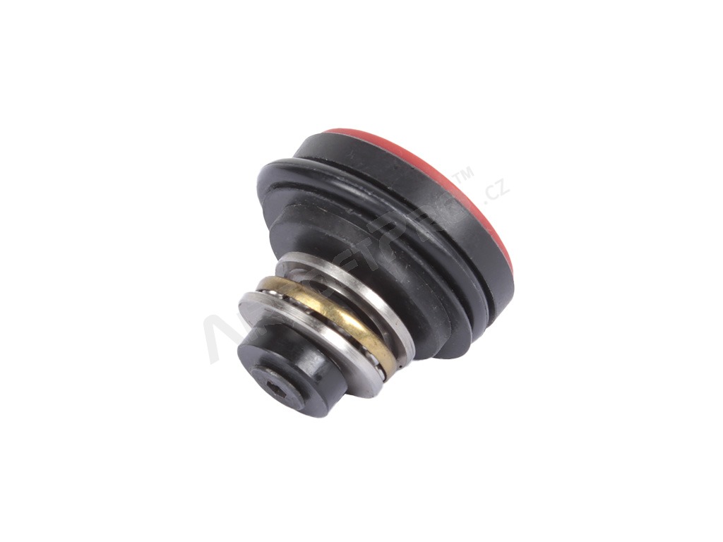 Hliníková hlava pístu s protitlakou funkcí a ložiskem, určená pro upgrade airsoftových zbraní. Hlava je vyrobena z odolného a lehkého polymeru (10 g).
