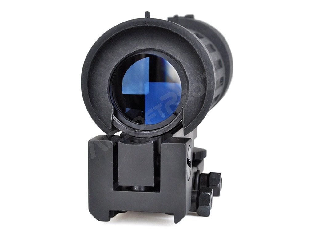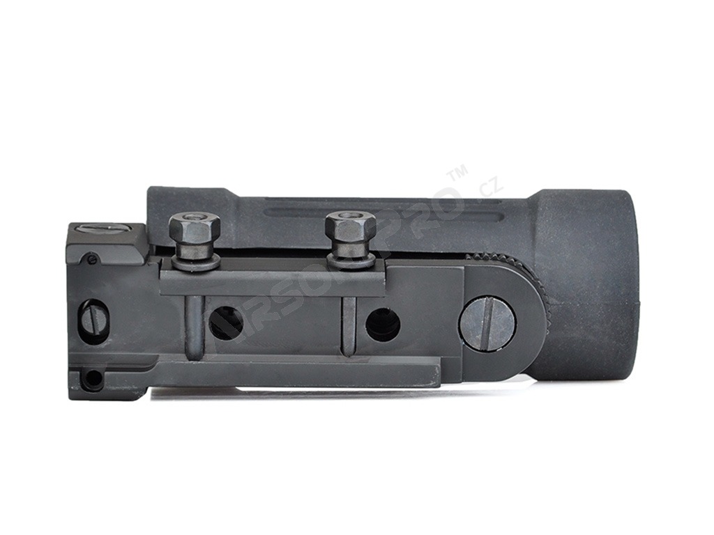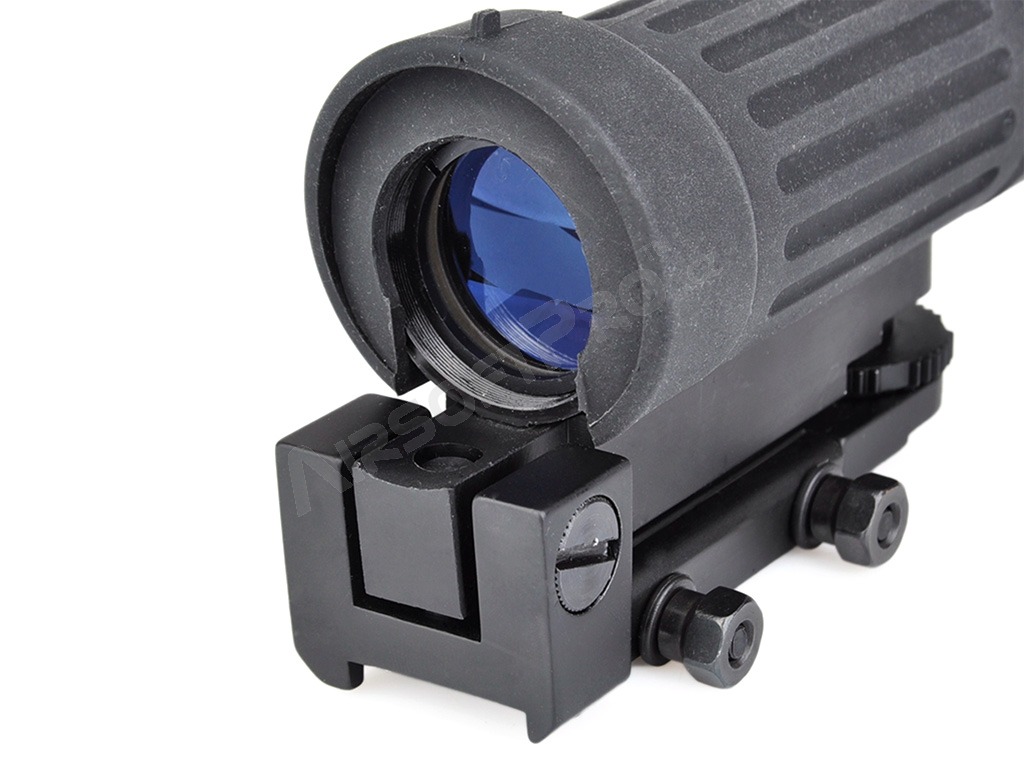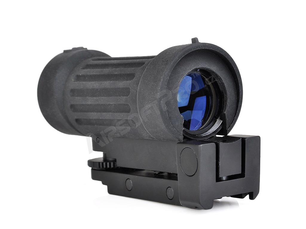 Puškohled má pevné 4x zvětšení. Otevřená mířidla, včetně předního a zadního hledí, jsou umístěna v horní části gumového pouzdra. Záměrný kříž lze nastavit jak vertikálně, tak horizontálně. Instaluje se na RIS lištu.