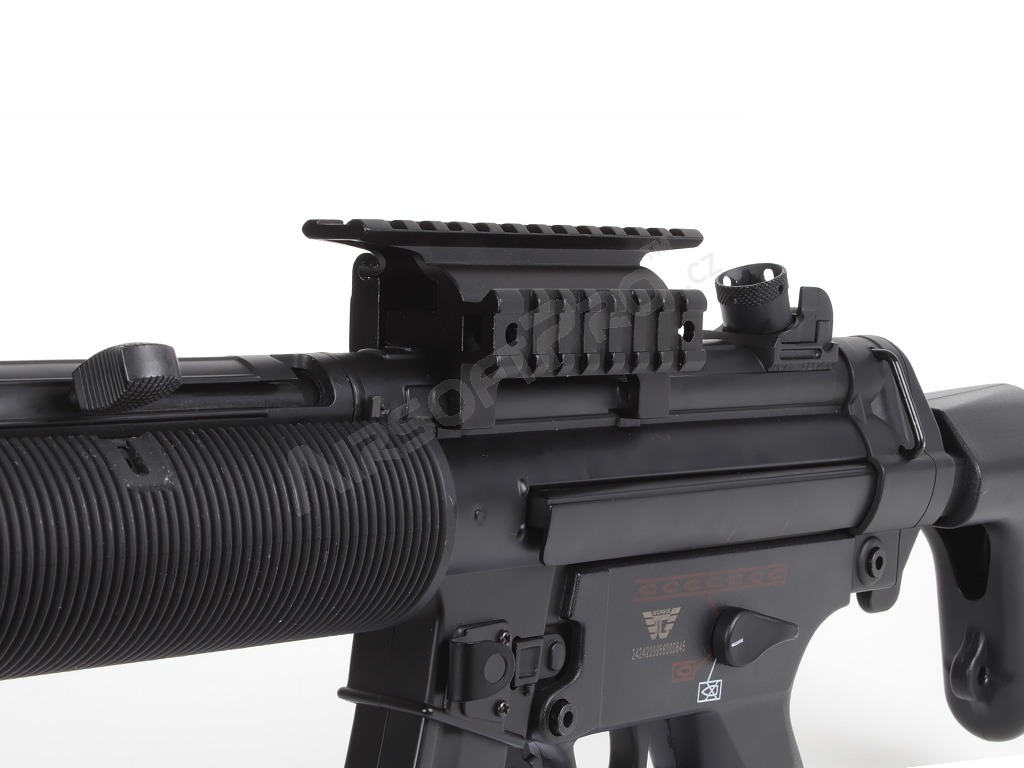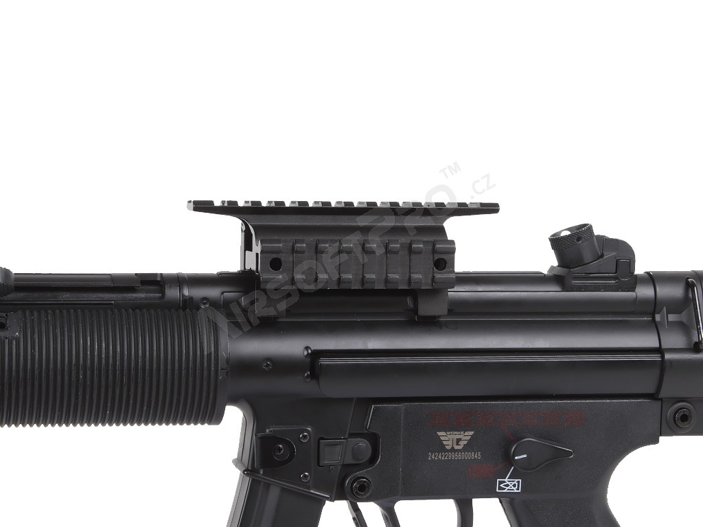 Celokovová vysoká montáž pro zbraně MP5 s dvěmi RIS lištami.