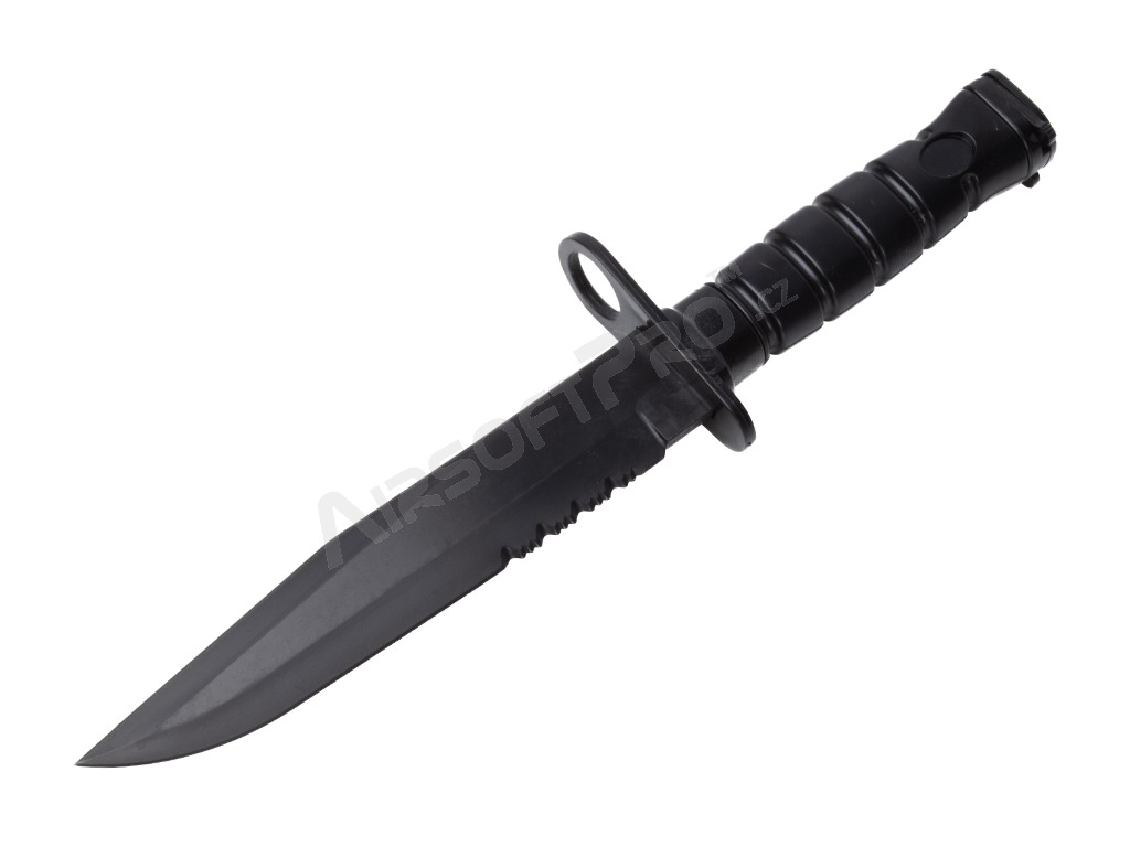 Realistická replika taktického bojového nože/bajonetu M10 s typickým plastovým pouzdrem. Tento bezpečný cvičný nůž s gumovou čepelí je ideální pro airsoftové využití, nácvik technik zblízka nebo jako stylový doplněk výstroje.