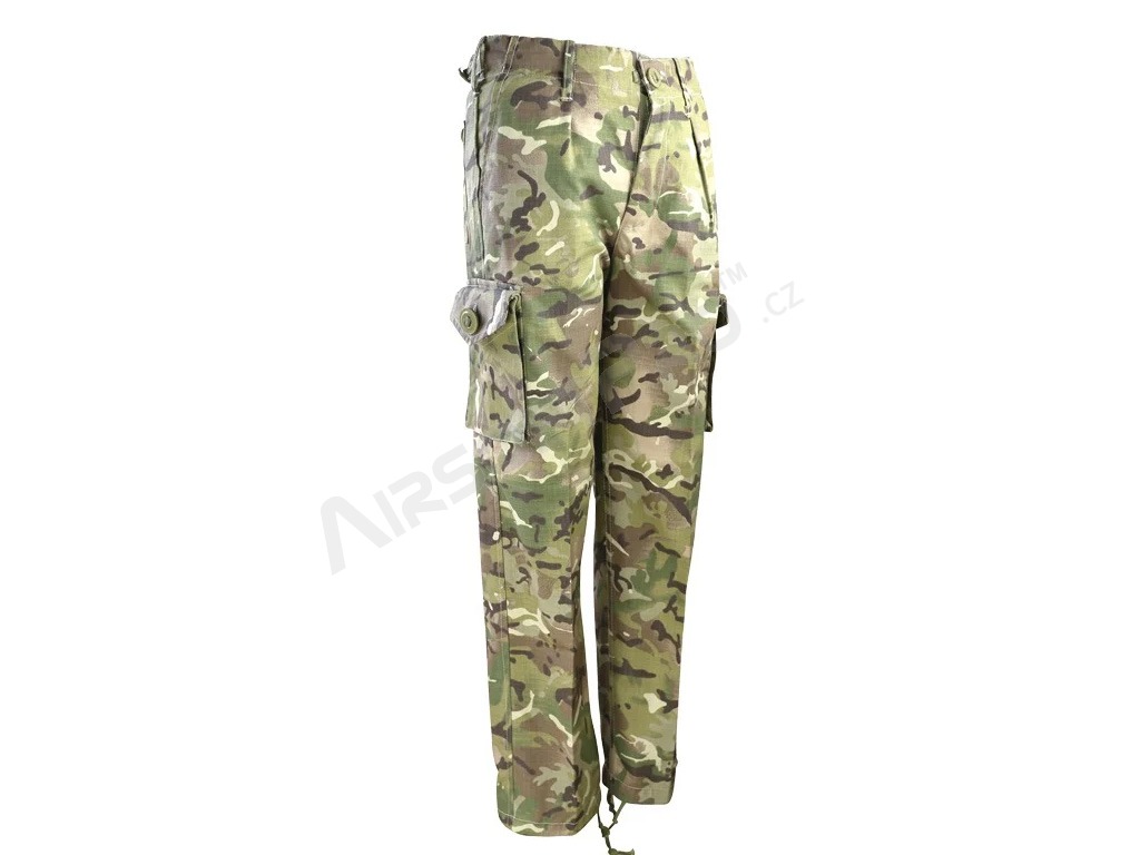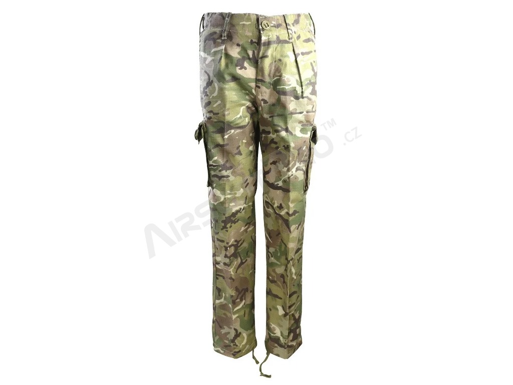 Dětské kalhoty mají zapínání na zip, zesílený sed a kolena a 6 kapes. Kapsy jsou typu S95 britské armády a kalhoty jsou vyrobeny z 65 %/35 % polybavlny ripstop. Kalhoty jsou vynikající pro děti, které si chtějí hrát venku, a snadno se čistí.
