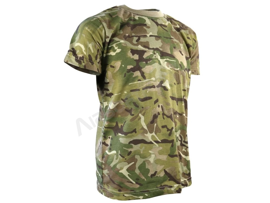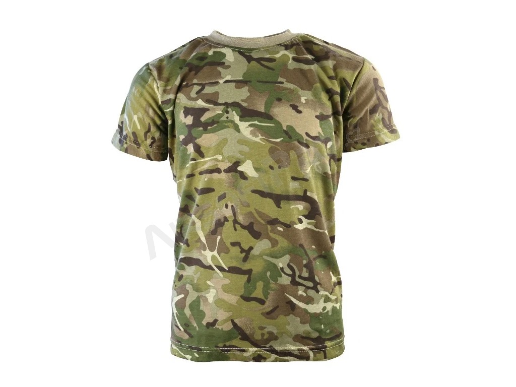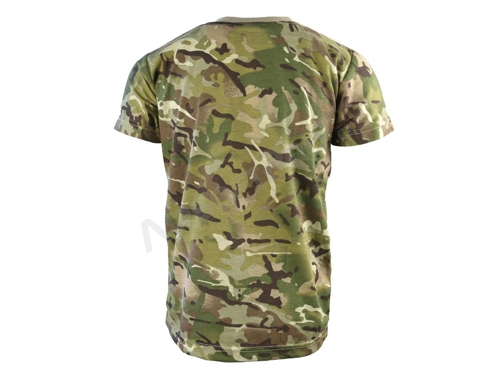 Dětské tričko s maskovacím vzorem má kulatý výstřih, krátké rukávy a celoplošný maskovací vzor. Tričko je vyrobeno ze 100% bavlny s gramáží 170 g/m2, což z něj dělá ideální tričko pro každodenní nošení nebo hraní pro malé vojáky.