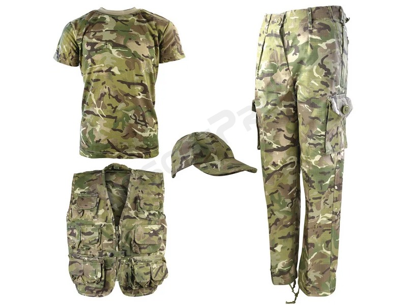 Perfektní volba pro malé průzkumníky! Dětská sada Kids Explorer obsahuje kompletní oblečení v maskovacím vzoru BTP (British Terrain Pattern - obdoba Multicam vzoru) – ideální pro hry v přírodě, táboření nebo airsoft.