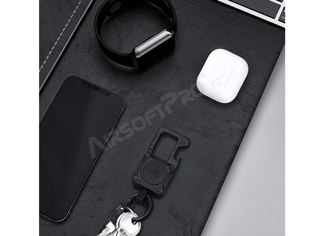 Díky této stylové kovové klíčence budete mít své klíče, batoh nebo jiné cennosti vždy bezpečně pod dohledem. Klíčenka v sobě spojuje Bluetooth lokátor kompatibilní s Apple Find My a praktický otvírák na lahve. Styl, bezpečnost a funkčnost v jednom!