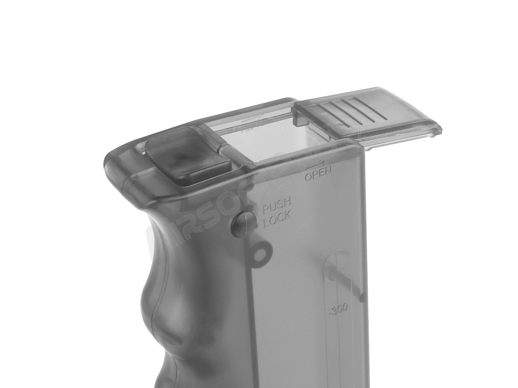 - Kompatibilita s většinou airsoftových zásobníků (mid-cap, low-cap, real-cap).