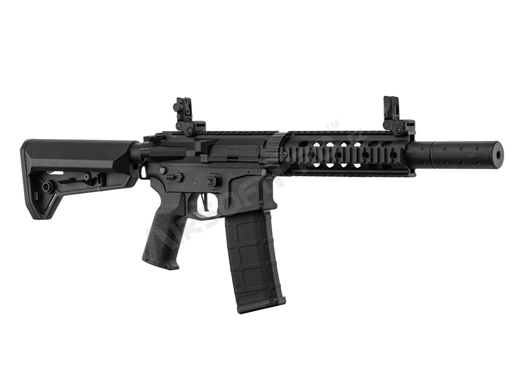 The gun contains a metal piston for better durability and a 6.03 mm precision barrel with a ProWin style hop-up chamber for optimal range and fine adjustment. The weapon also has a popular quick change spring system - QSC. Changing the spring is a matter of a few minutes. Stock gun comes with the M100 spring inside, which is suitable for CQB skirmish. For more demanding players, there is also a M120 spring included in the packing