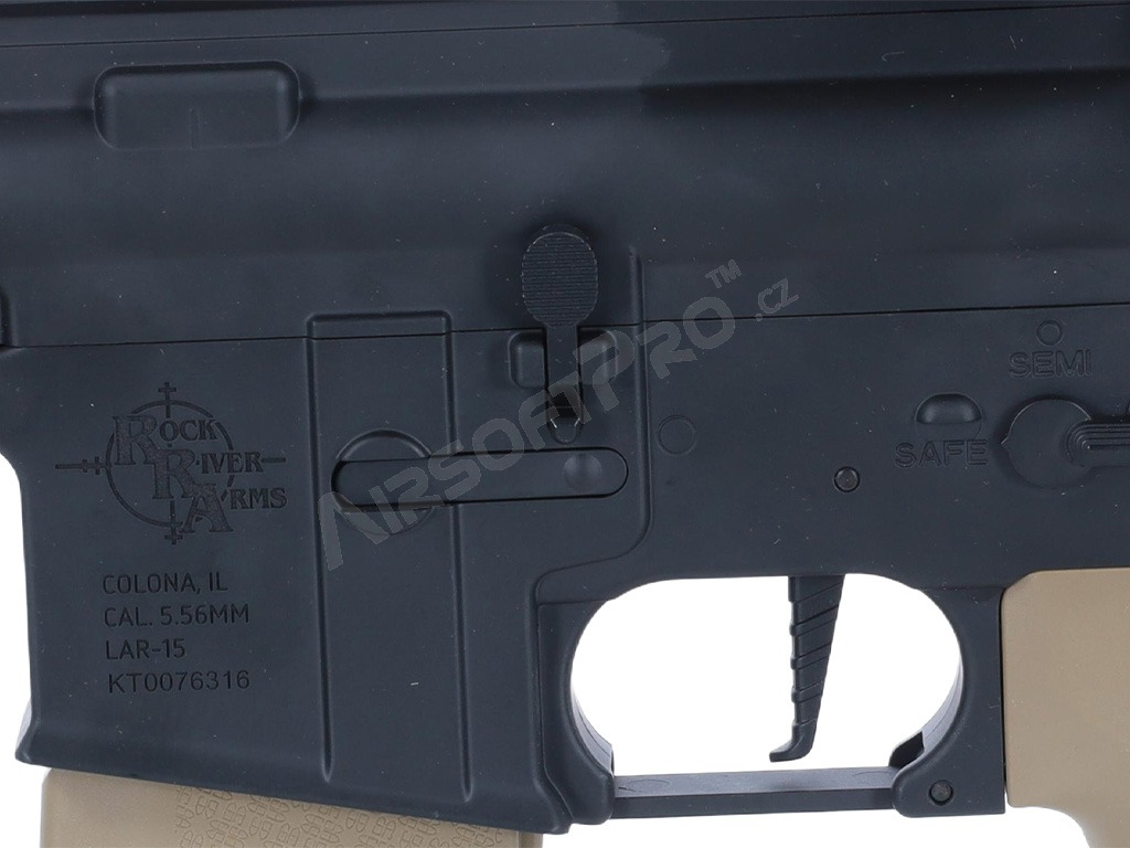 The replica featuresthe licensed markings offirearms manufacturer Rock River Arms. It is an American manufacturer of gun parts and accessories, but primarily of high quality carbines from the AR-15 family. Founded in 1996 by the Larson brothers, the company, in partnership with Les Baer, is based in Colonie, Illinois. Today, RRA supplies its carbines under contract to the DEA, FBI and US Marshals, among others.