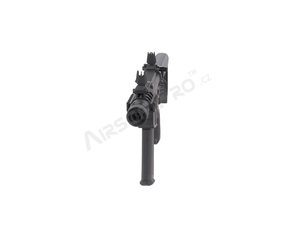 The replica is equipped with a RIS handguard, enabling the attachment of various accessories such as grips, flashlights, or laser modules. The Light Ops Stock is lightweight and minimalist, featuring non-slip cheek pads and a rubber butt pad for comfortable shoulder placement.