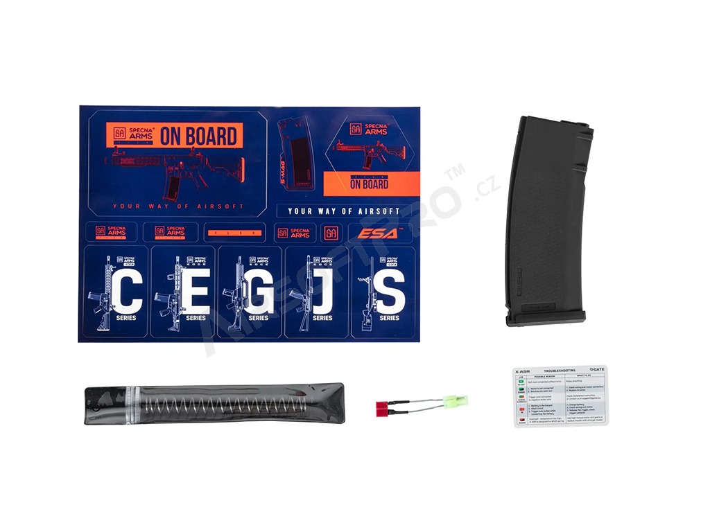 The carbine has a factory-installed system MOSFET X-ASR of a Polish brand GATE. This is an unprecedented collaboration between a Polish manufacturer and a well-known airsoft replica factory. The highest quality MOSFET X-ASR will take care of the safety of the replica's components, improve trigger response and the life of the electronics and battery, and allow you to diagnose basic malfunctions inside the replica thanks to the built-in indicator LEDs.
