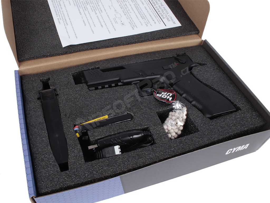 CYMA CM.131S AEP Mosfet Edition is an electric pistol (AEP) that represents a great alternative to manual and gas pistols. It combines the ease of use and reliability of electric drive with the option of burst fire — ideal for training and fast-action deployment, while remaining independent of ambient temperature.