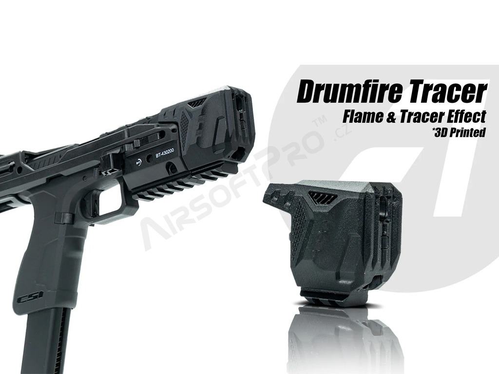 The set includes a specialized Drumfire tracer unit. Its body is made of durable 3D-printed material and offers 3 output modes: