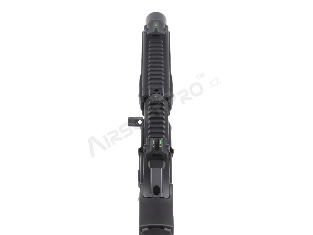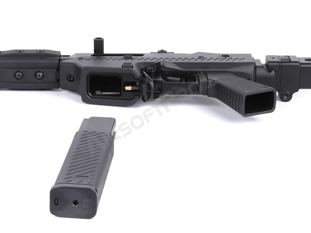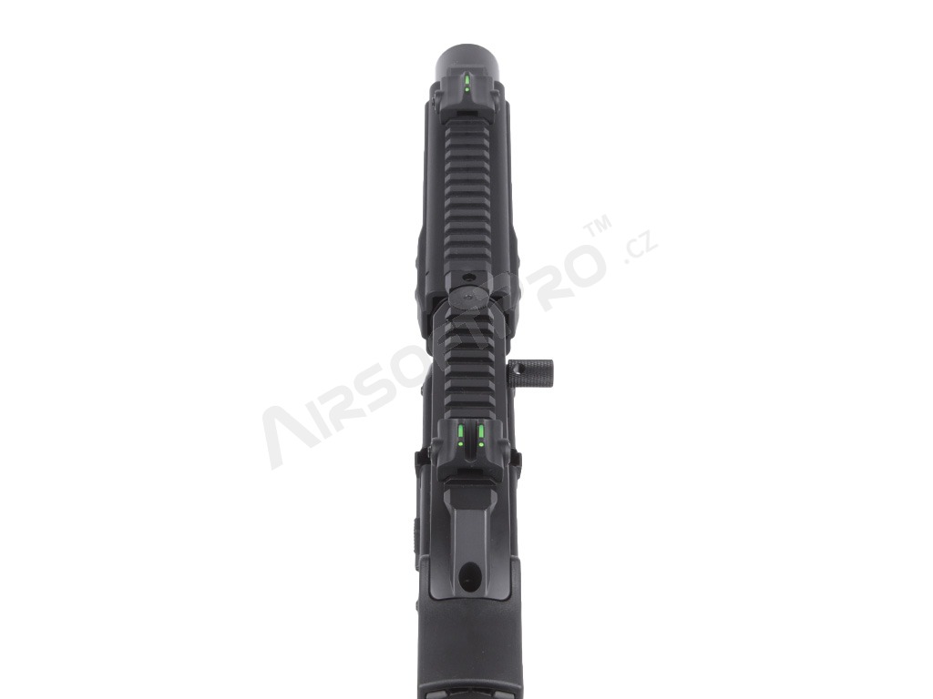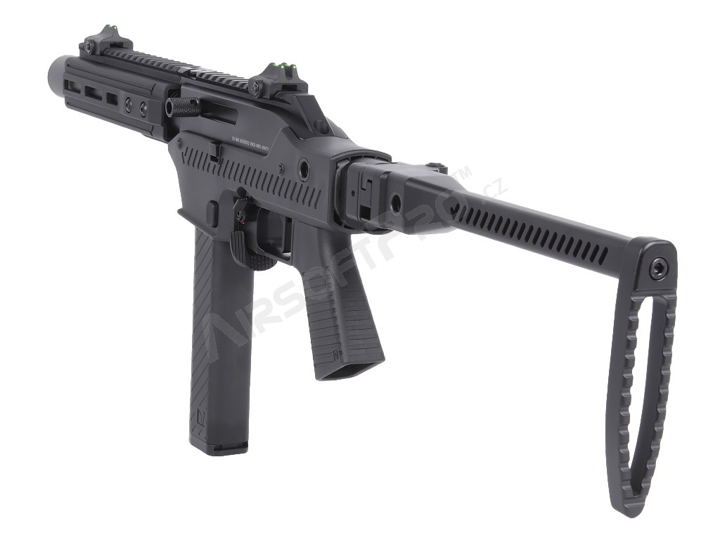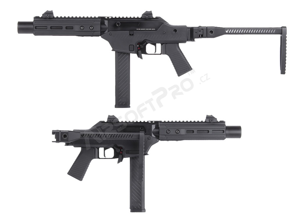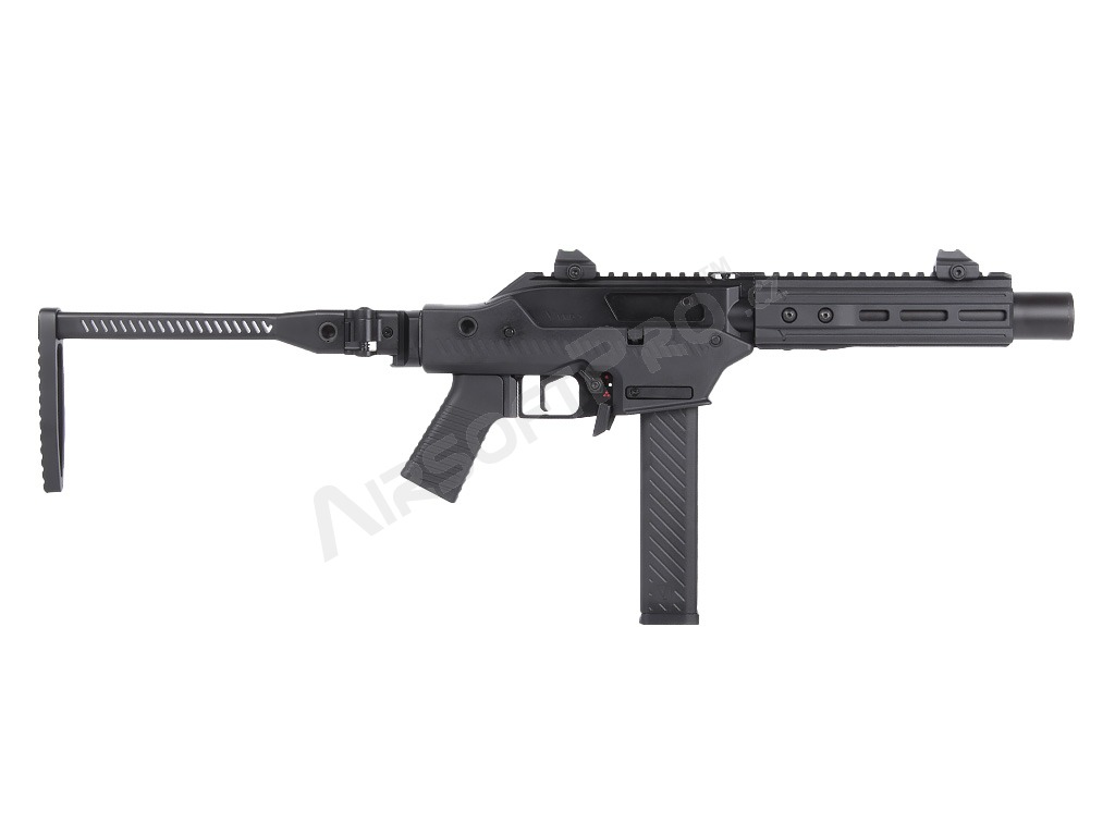 Version with a short 223 mm barrel, muzzle energy up to 1 J, folding PDW stock, GBB M4-spec handguard,long magazine for 48 BBs and full-auto. Suitable for CQB.
