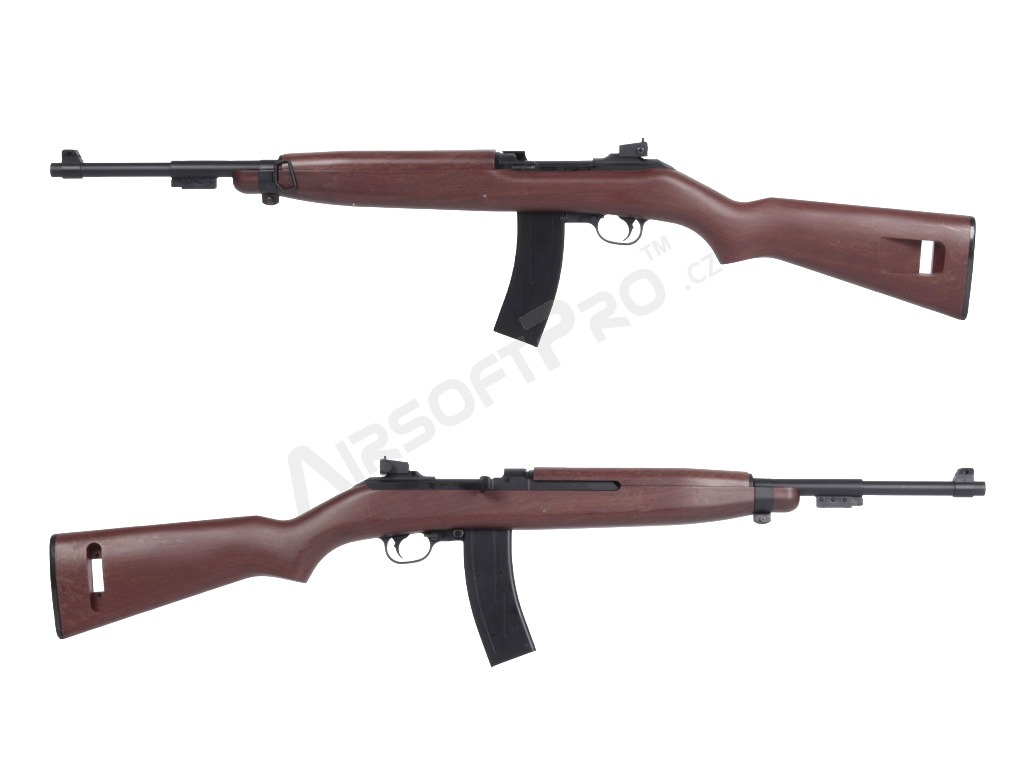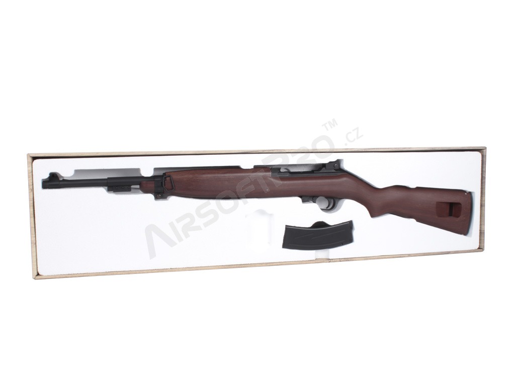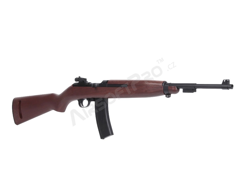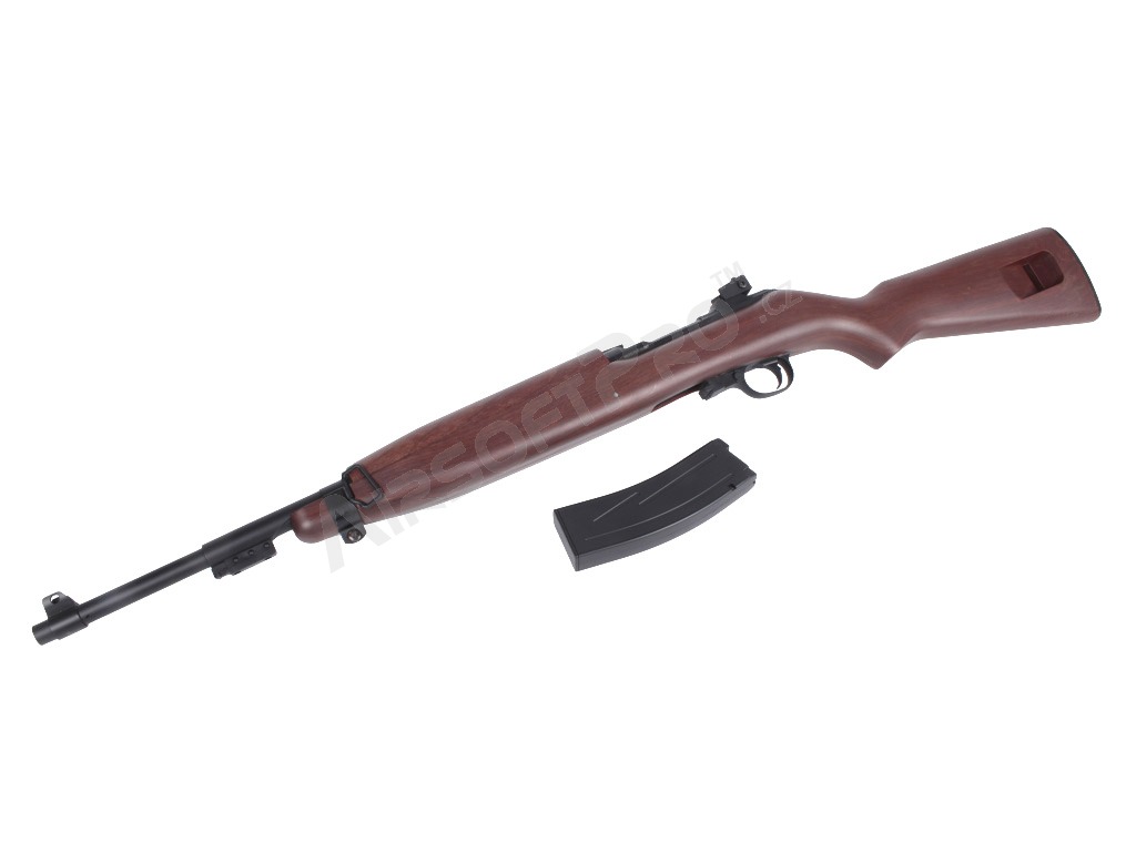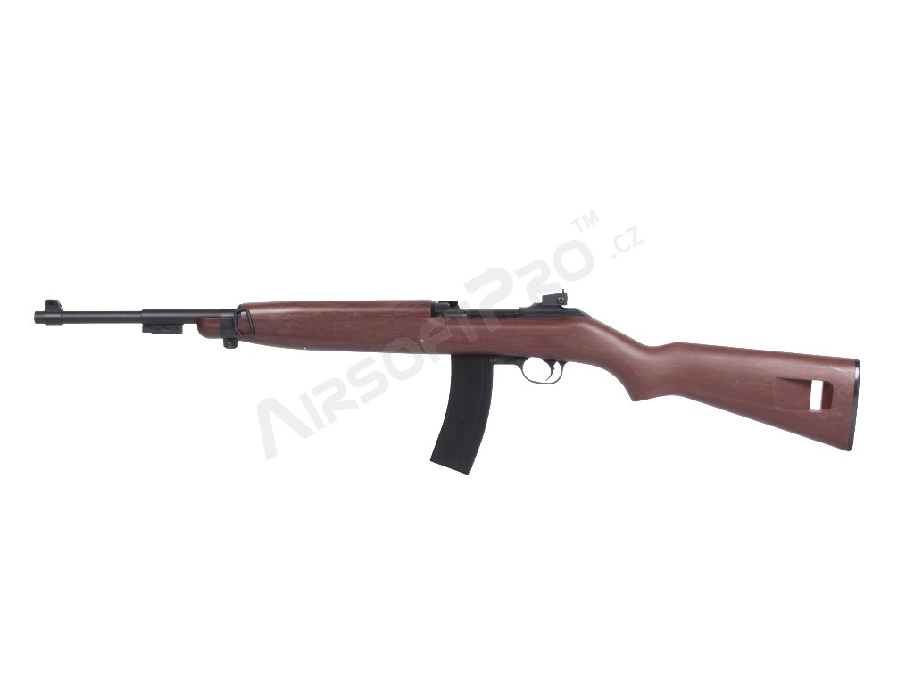 Stylish manual replica of the military M1 carbine in 1:1 scale — an ideal choice for reenactment, collectors and players who are looking for something different while not requiring batteries or gas. The stock features a wood-effect finish for a classic look; the body is made of lightweight plastic, making the rifle easy to handle and low-maintenance.