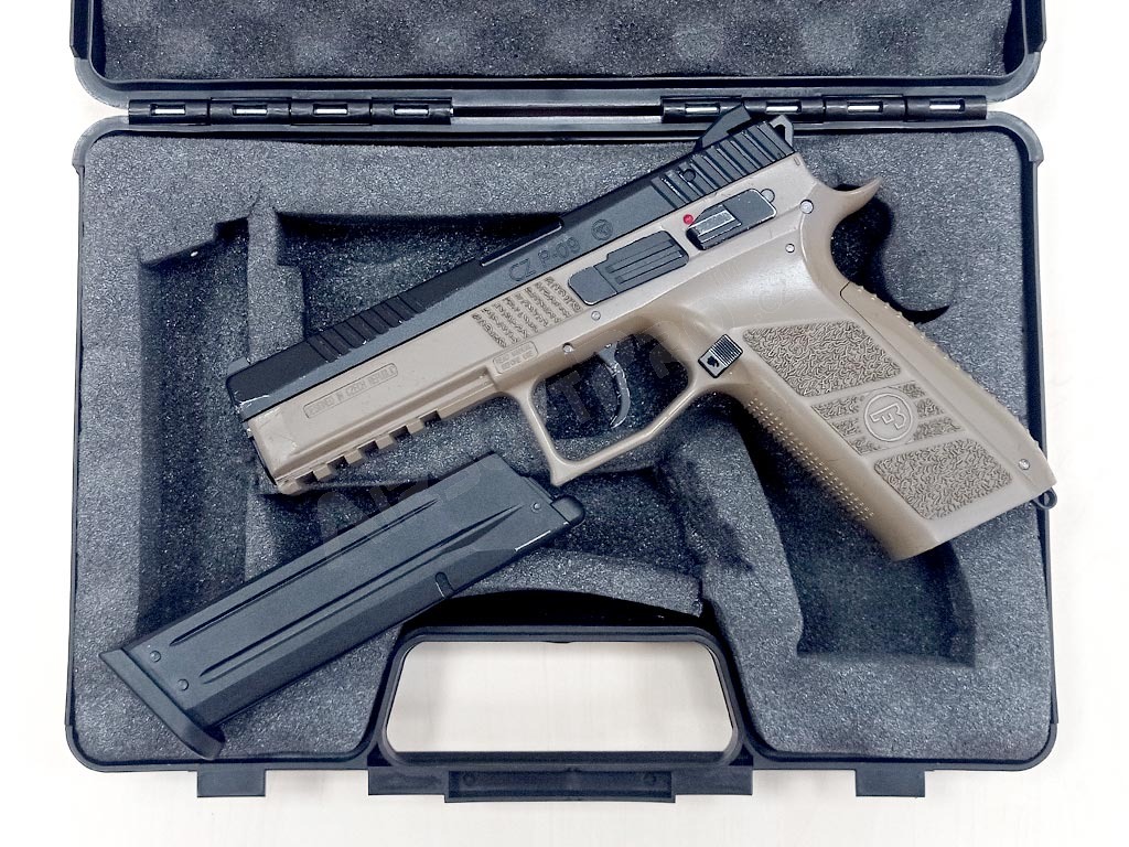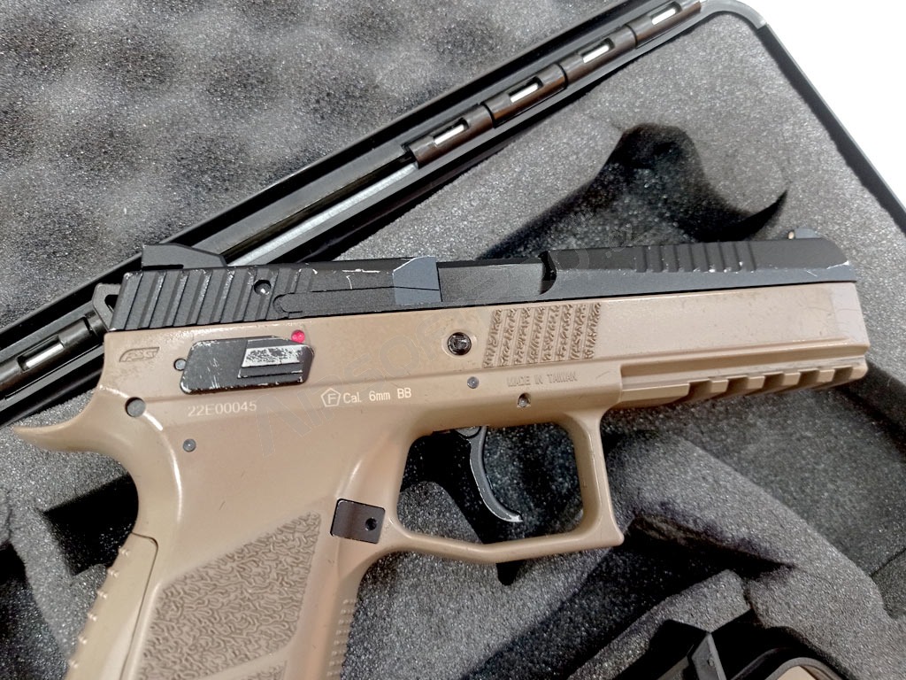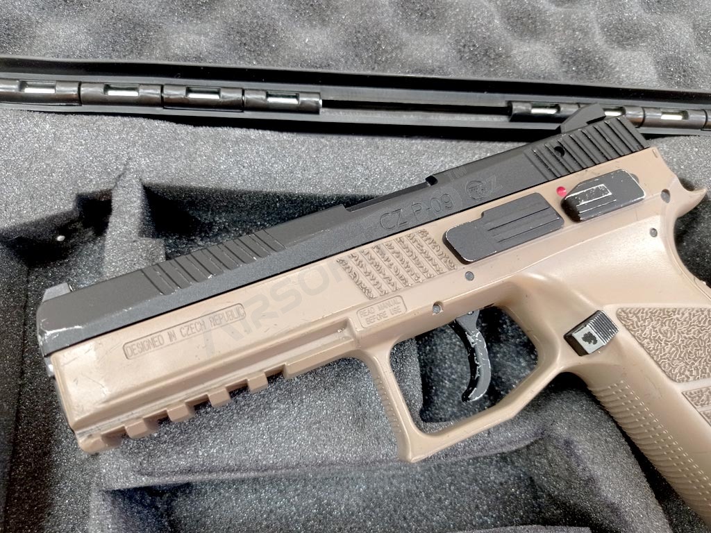 Airsoft pistol CZ P-09 DT FDE, metal slide, Gas blowback + case - UNRELIABLE [ASG]