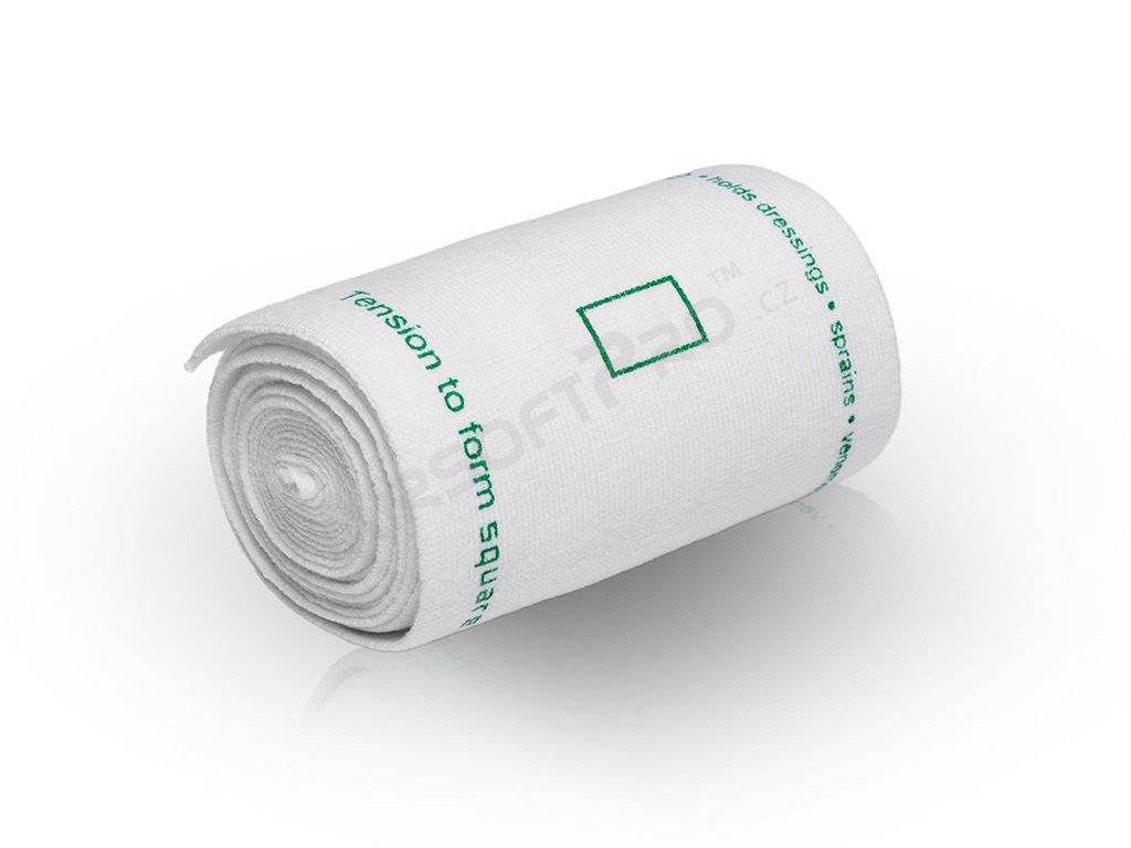 It features an intuitive rectangular pictogram that changes into a square when the bandage is stretched correctly.