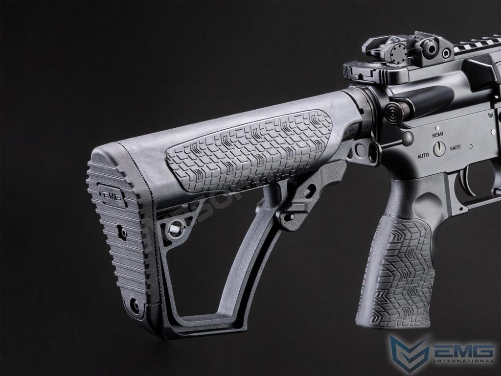 The ETA tactical stock, licensed by EMG, is designed for demanding M4/16 platform users seeking an ergonomic stock with generous battery space without compromising on aesthetics or durability.