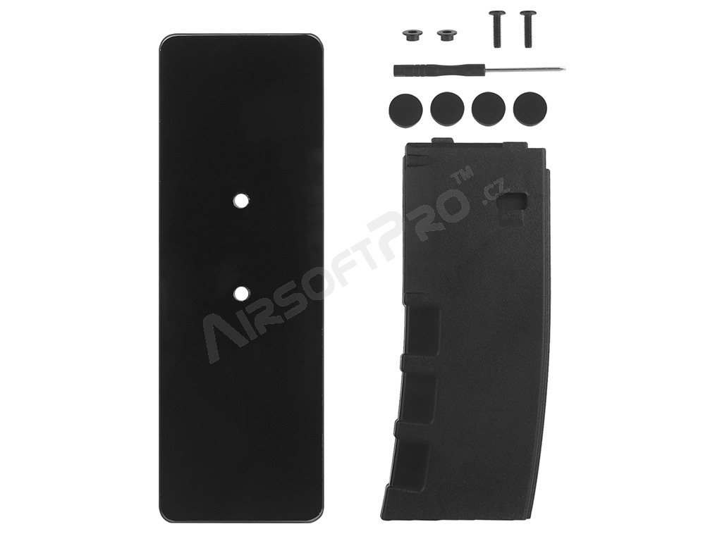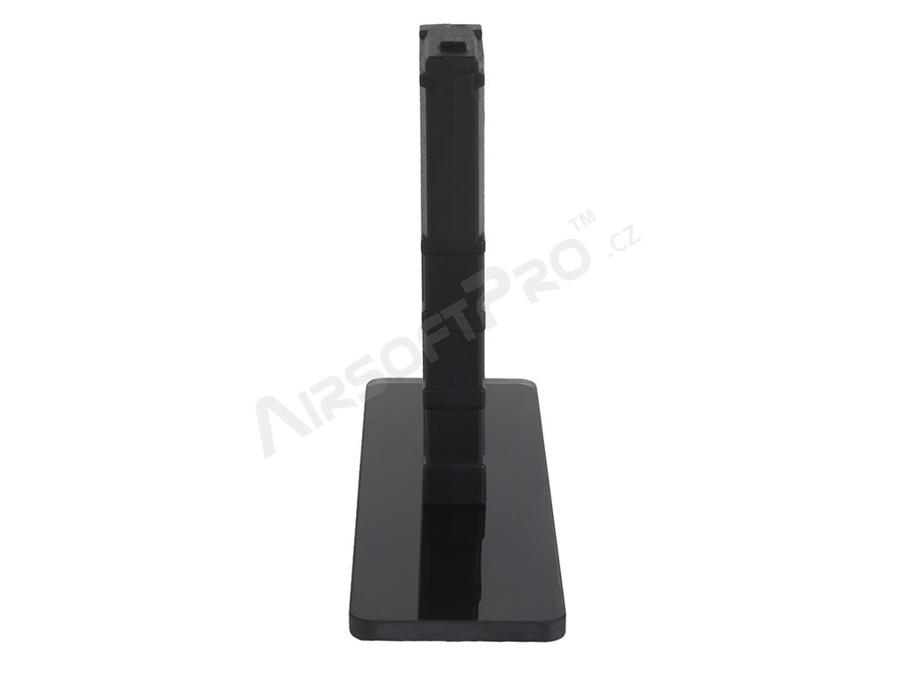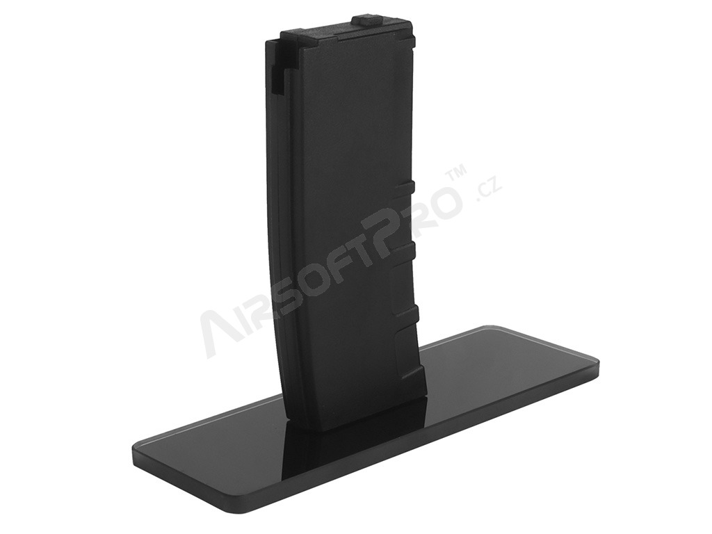 Using the magazine catch mechanism, the rifle can be inserted and secured in the stand just like a standard magazine. The glass base adds an elegant touch, enhancing the display of your weapon. The magazine-shaped support is made from ABS plastic, while the base is glass for maximum visual impact.