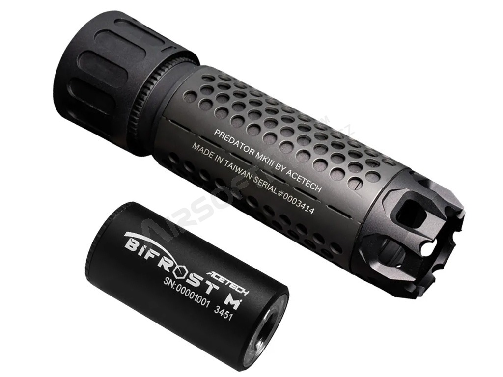 Acetech's innovative Predator MKIII with Blaster M tracer silencer with muzzle flash imitation.