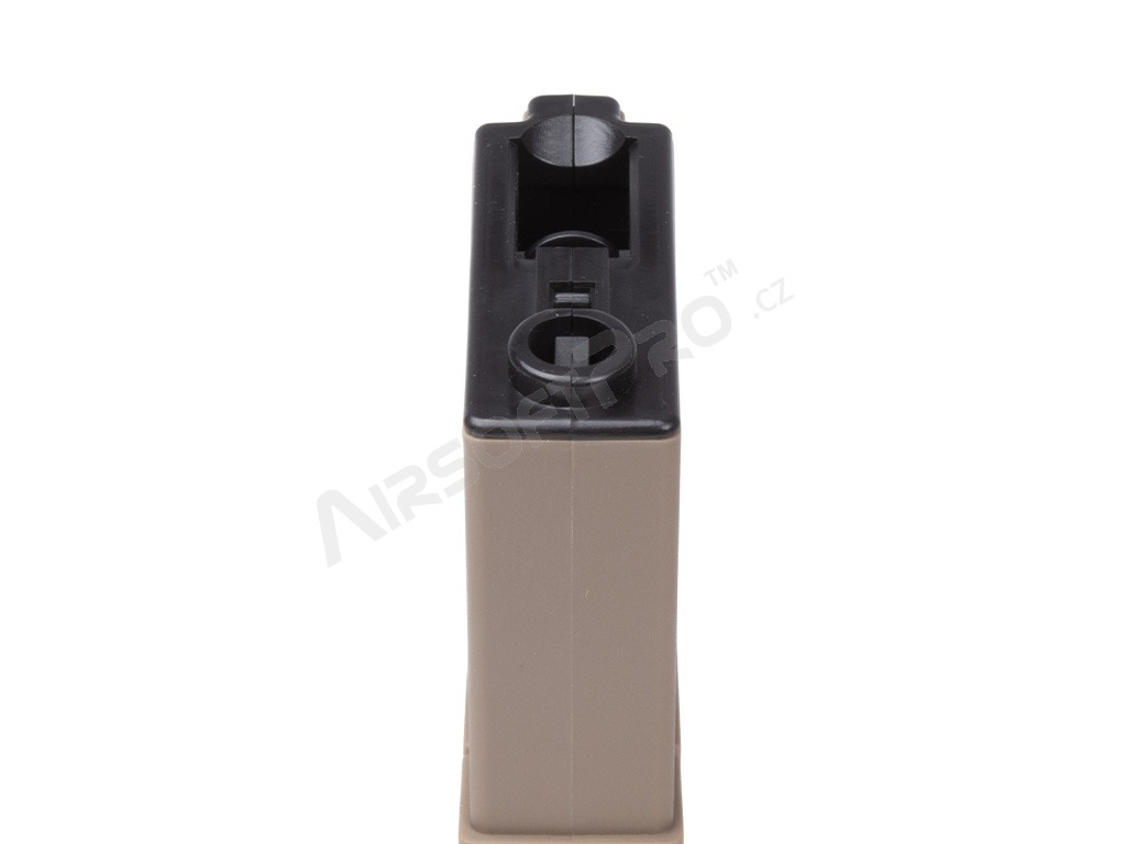 High-capacity Lancer-style push magazine for M4 from Snow Wolf. The magazine has a capacity of 300 BBs. The magazine is made of high-quality polymer.