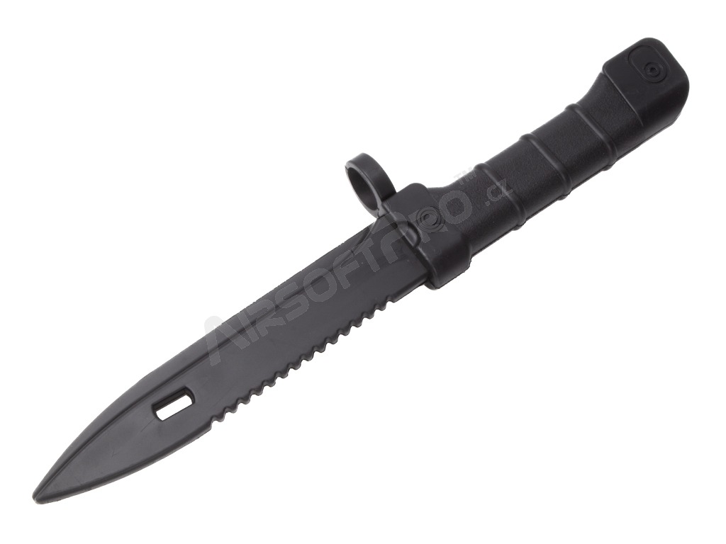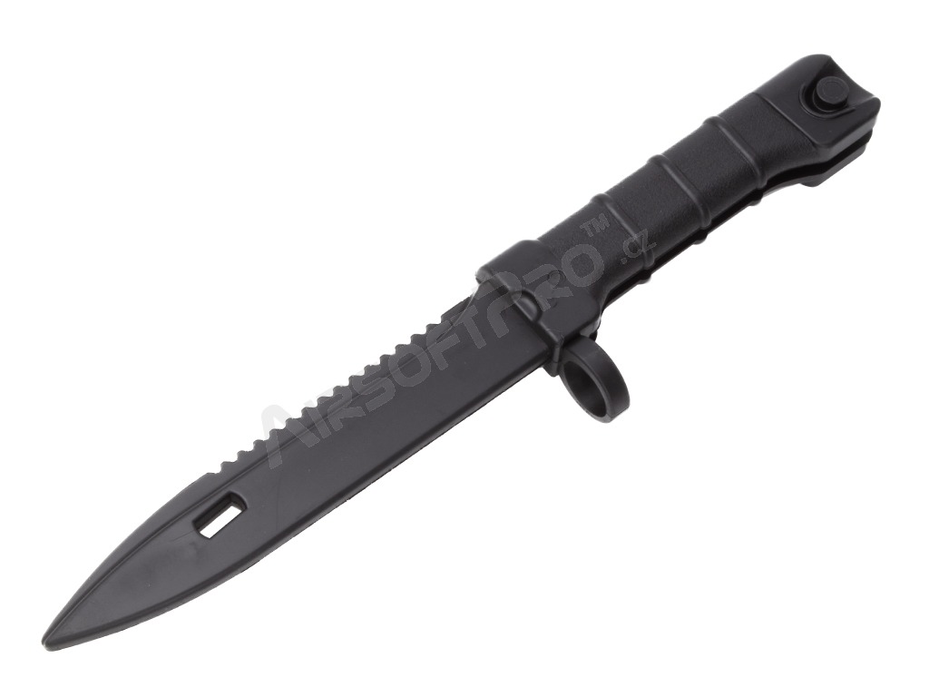 The soft rubber blade is flexible enough - it bends over 90°. The handle is made of durable polymer and the knife can be attached as an imitation bayonet on the barrel of AK series weapons. Furthermore, there is an eyelet on the handle for attaching a cord ( lanyard ).