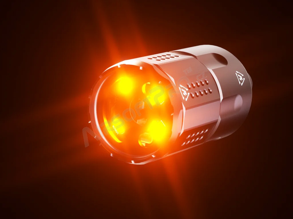 Le silencieux offre 4 modes - imitation de coup de feu, auto-éclairage, éclairage avec imitation de coup de feu et éclairage intermittent avec imitation de coup de feu.