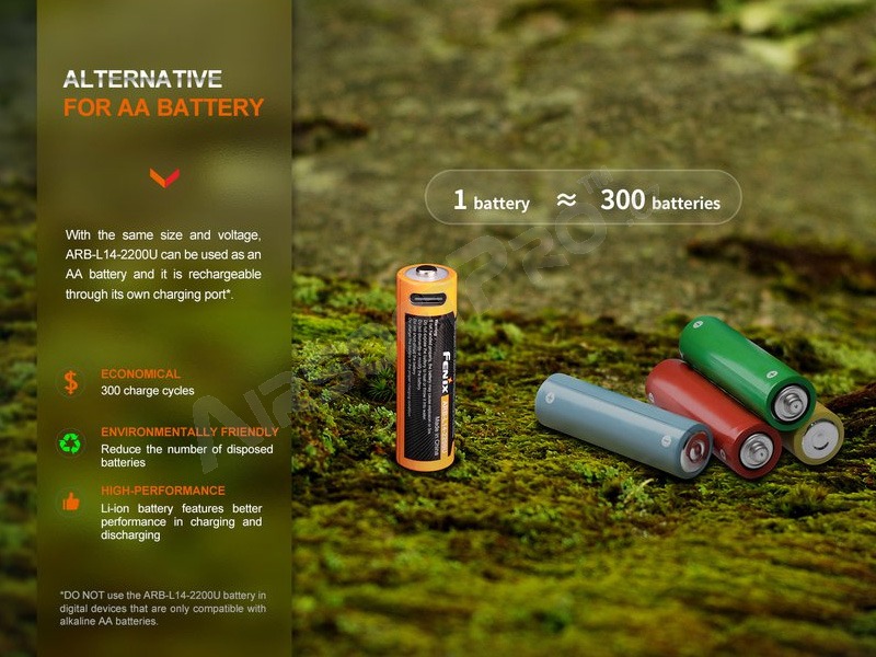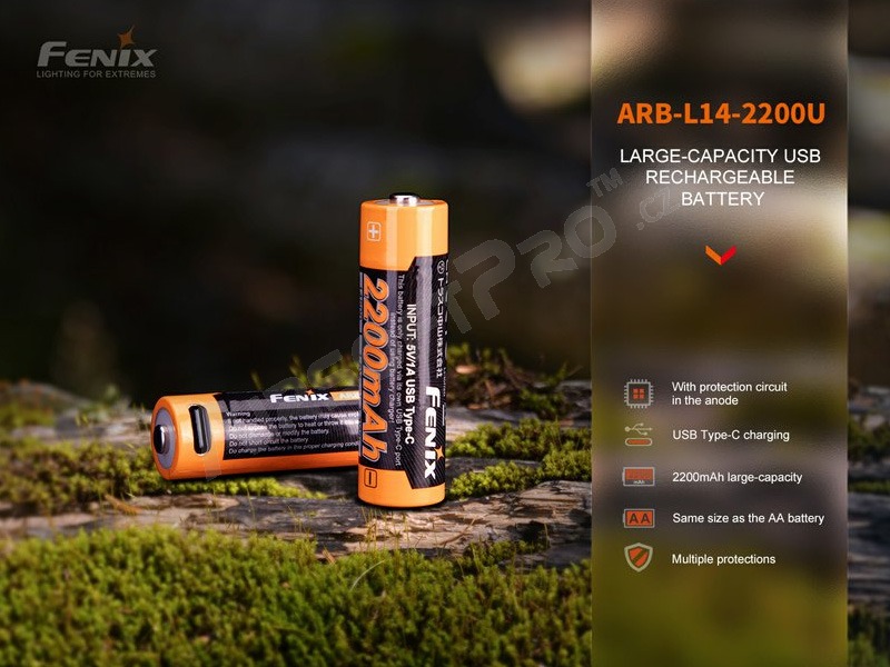 Batterie rechargeable USB-C AA 2200 mAh (Li-ion) [Fenix]