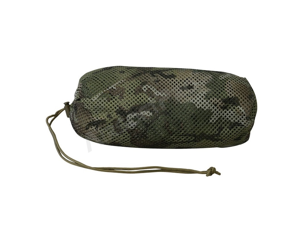 Des sections élastiques permettent d'insérer différents types de matériaux afin d'adapter au mieux le camouflage au terrain, tout en ne limitant pas les mouvements du tireur.