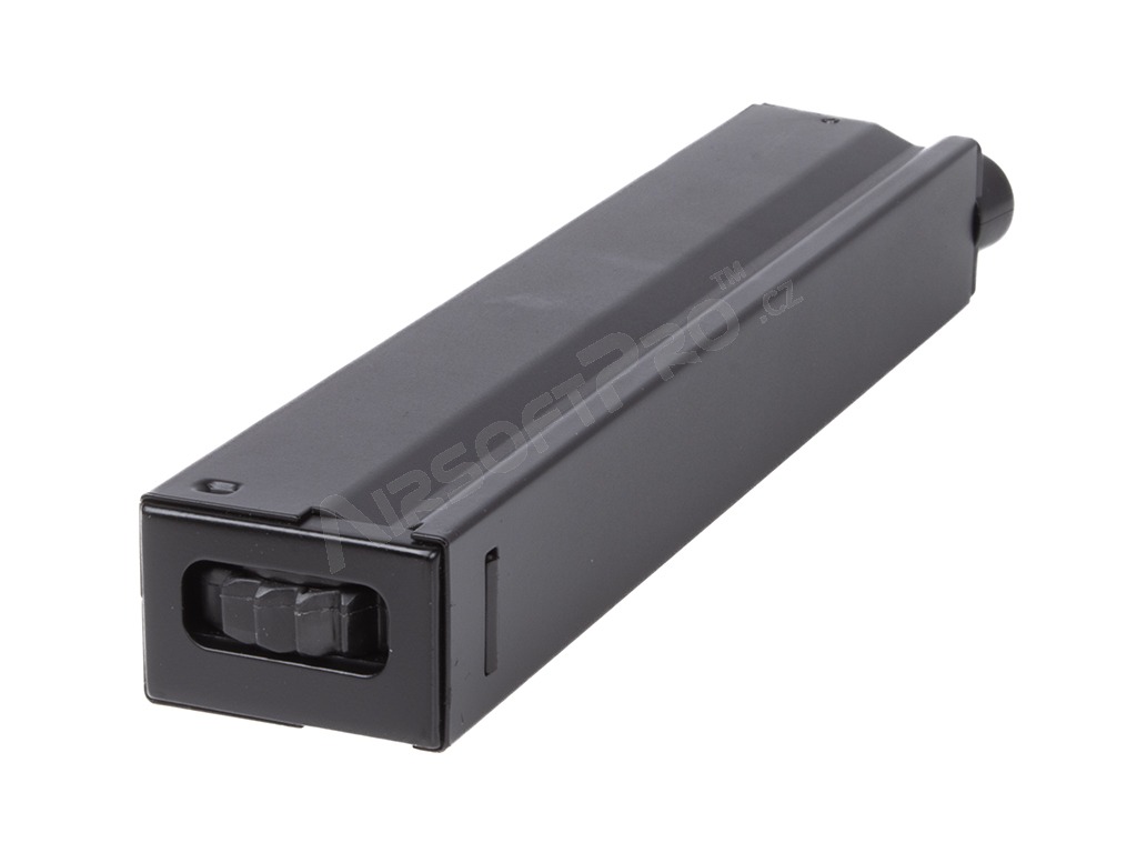 Il peut contenir jusqu'à 250 billes, qui sont simplement introduites par le trou supérieur du chargeur. Une roue dentée (qui sort du fond du chargeur) prolonge un mécanisme interne qui alimente automatiquement le pistolet en billes. Ainsi, il est théoriquement possible de tirer la totalité du chargeur en un seul armement complet avant le tir. Le chargeur est métallique.