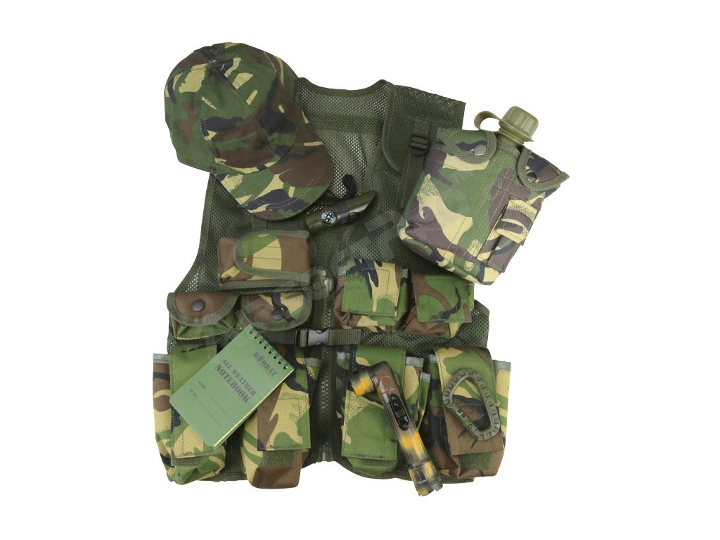 Ensemble de gilets d'aventure pour enfants en DPM (Disruptive Pattern Material - similaire au motif Woodland).