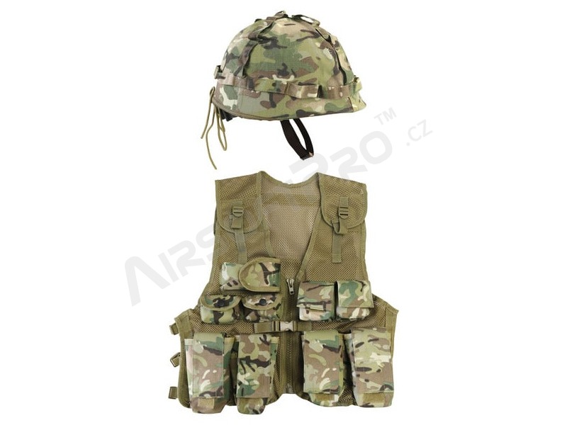Le choix parfait pour les petits explorateurs ! L'ensemble pour enfants comprend une veste et un casque d'assaut pour enfants avec une couverture de camouflage BTP (British Terrain Pattern) - idéal pour les jeux de plein air ou l'airsoft.