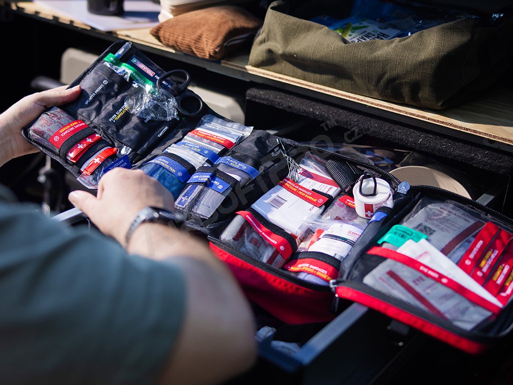 SURVIVALFirst Aid KIT - Large est la trousse de premiers secours la plus complète de SURVIVAL, conçue pour être utilisée rapidement, même dans les situations de stress. Grâce aux sections colorées et à l'étiquetage clair des articles, tout le monde peut s'y retrouver - le matériel est divisé de manière logique, facilement accessible et prêt à être utilisé immédiatement.