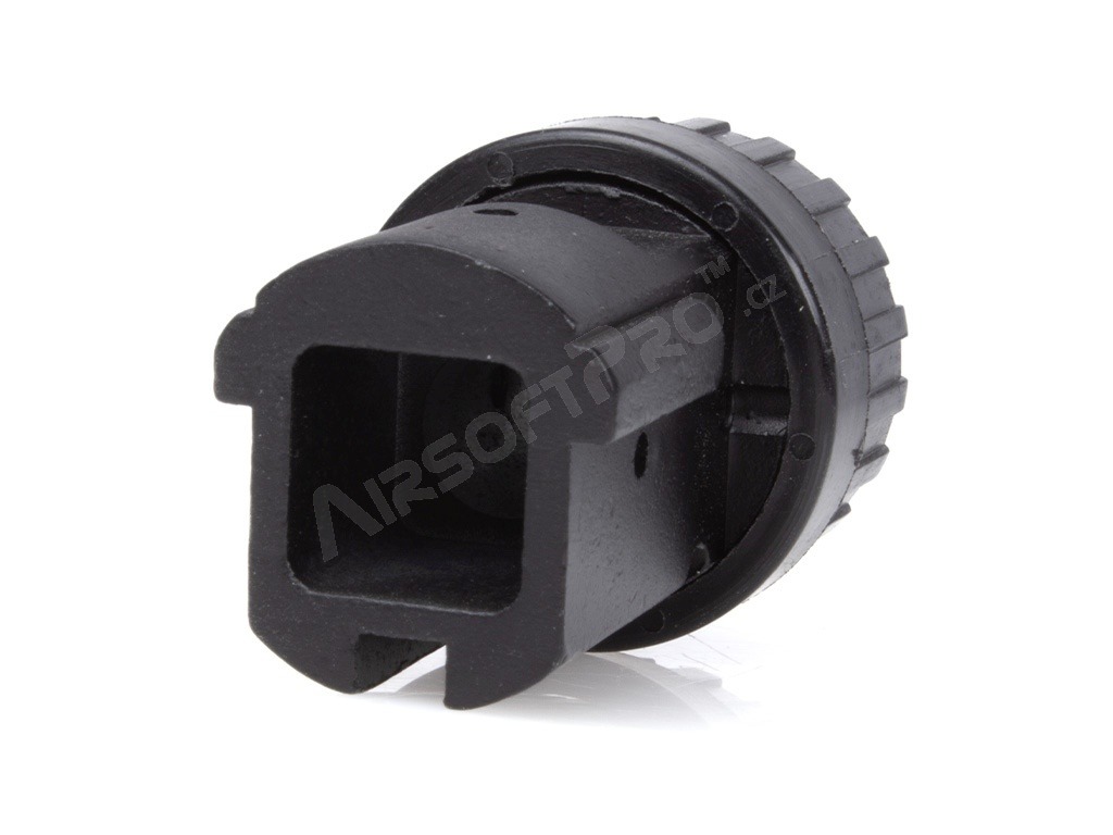 Chambre d'alimentation de remplacement en métal conçue spécifiquement pour le Snow Wolf PPSh-41. Assure le bon fonctionnement de l'alimentation en billes et le réglage précis de l'effet hop-up.