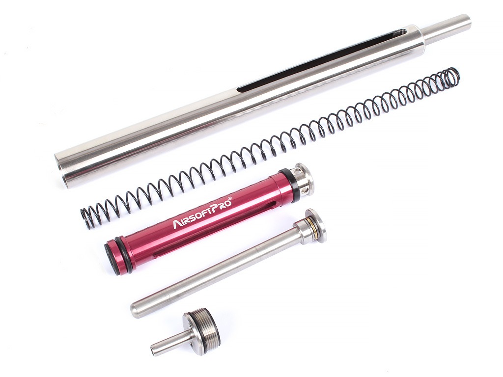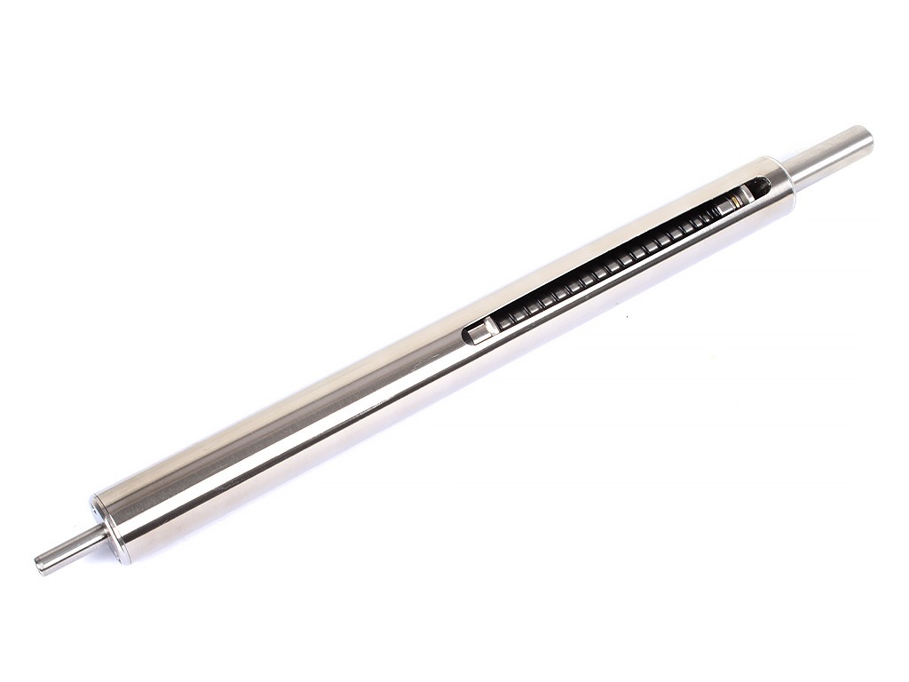 Sur la plupart des carabines de série, le barillet est généralement un fin tube d'aluminium et l'utilisation d'un ressort plus épais peut entraîner la déformation et l'arrachement du levier d'armement. Un barillet en acier inoxydable est donc une amélioration essentielle pour augmenter les performances et la longévité.