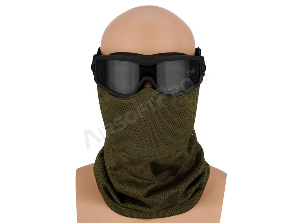 Un rembourrage est cousu sur le périmètre de la grille pour un confort maximal. La grille peut être partiellement profilée pour mieux s'adapter à chaque visage. Les lunettes de tir ou le casque peuvent être utilisés sans problème. Grâce à sa grande respirabilité, il permet d'éviter la formation de buée sur les lunettes.