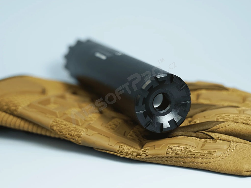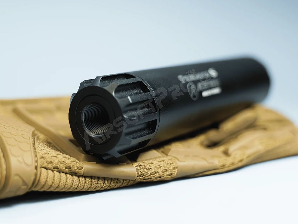 L'unité d'éclairage est logée dans un boîtier en aluminium anodisé mat. Elle est alimentée par une batterie Li-Ion 10440 de 3,7 V (incluse). L'unité AT2000R est insérée dans le suppresseur et est très bien centrée et sécurisée par un ressort contre le déplacement - aucun jeu qui pourrait causer des problèmes lors du tir. Le filetage standard M14 (-) le rend utilisable sur la grande majorité des armes d'airsoft avec un suppresseur de flamme amovible.