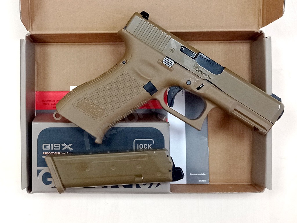 Pistolet airsoft Glock 19X, glissière métal, recul gaz - Coyote - RETOUR PAR LE CLIENT [UMAREX]