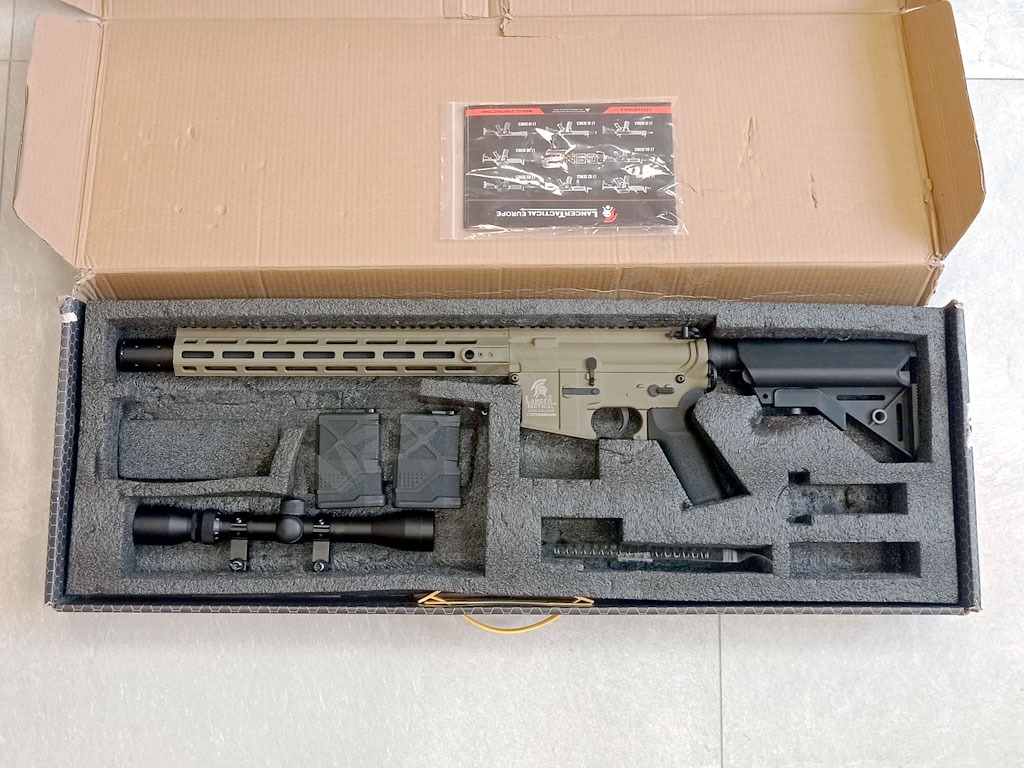 Fusil airsoft LT-32 DMR (Gen.2) + lunette + bipied + 2x mag - TAN - RETOURNÉ [Lancer Tactical]