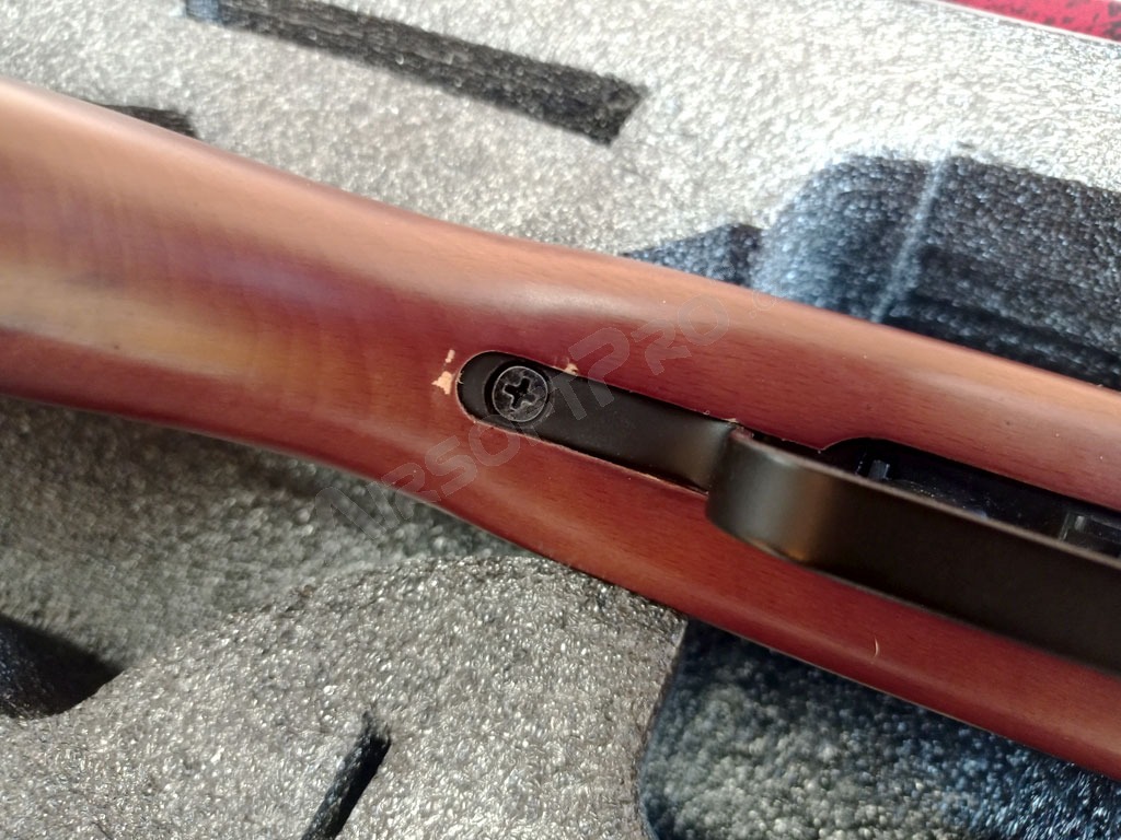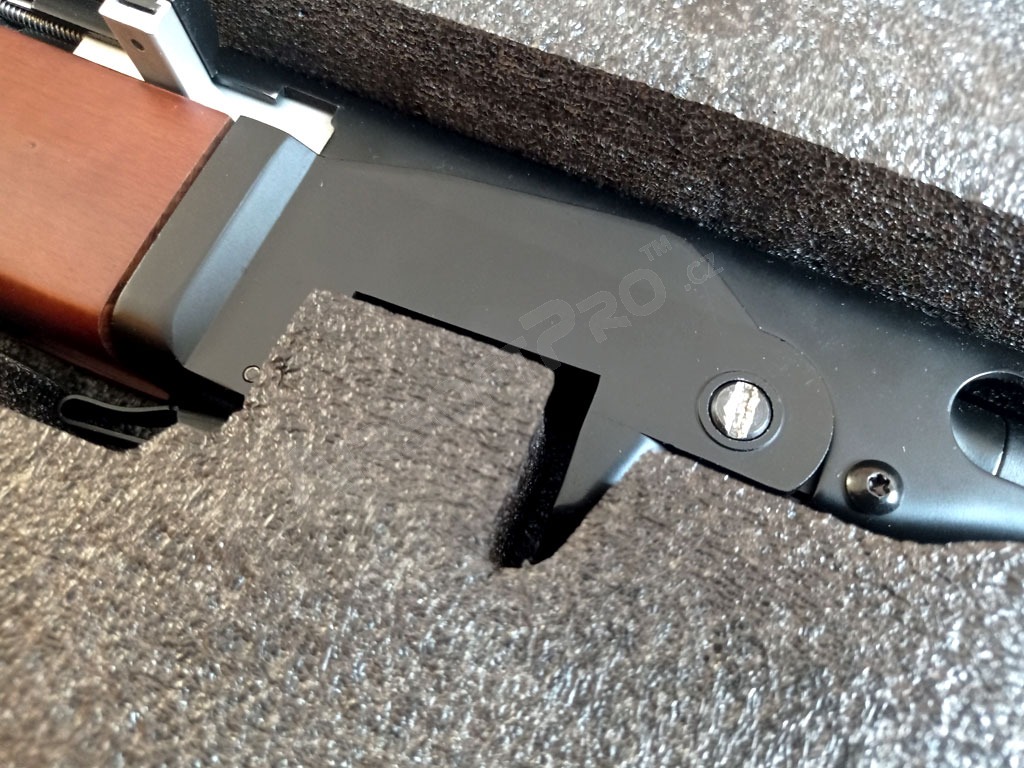 Ce classique des armes de la Seconde Guerre mondiale n'a plus besoin d'être présenté. Le PPSh ou "Spagin" était une arme typique de l'Armée Rouge. Cette réplique est fabriquée conformément à son modèle réel, entièrement en métal et en bois véritable. Elle dispose également d'un système de recul électrique qui déplace non seulement le levier d'armement de la culasse, mais aussi la fenêtre d'éjection de la culasse lors du tir. L'arme est en bois très bien travaillé et son corps estampé est très réaliste.